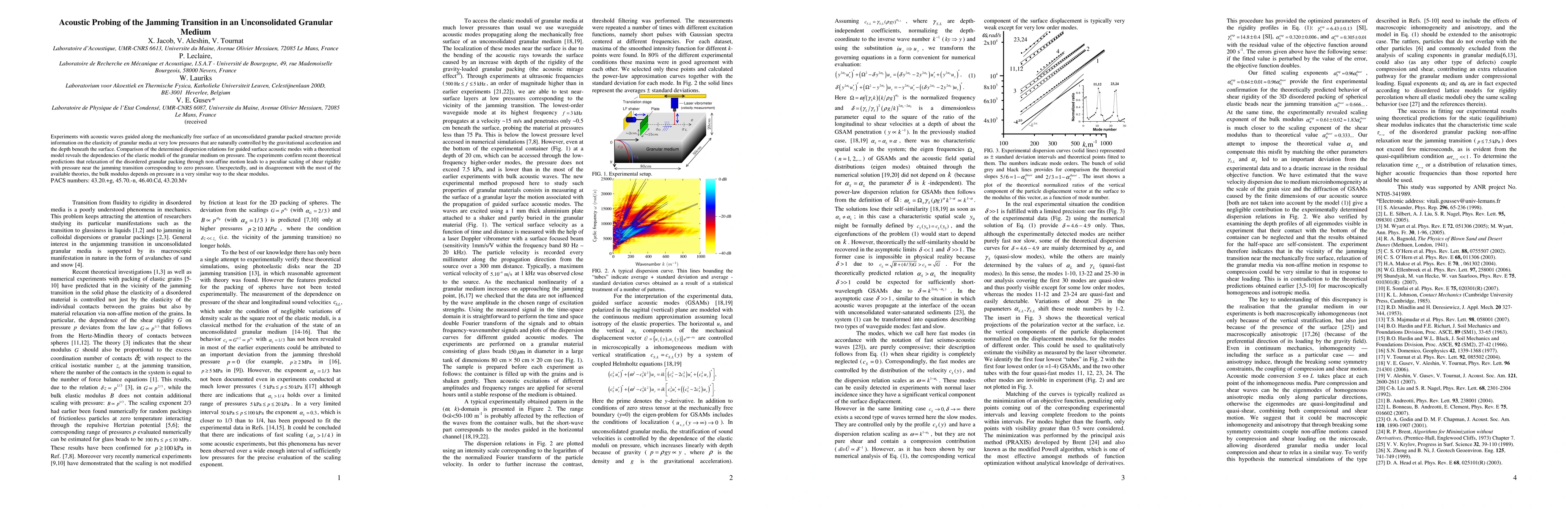 This study investigates the elasticity of unconsolidated granular media using acoustic waves, revealing how elastic moduli scale with pressure near the jamming transition. Contrary to most theories, the bulk modulus was found to scale similarly to the shear modulus, challenging existing models.