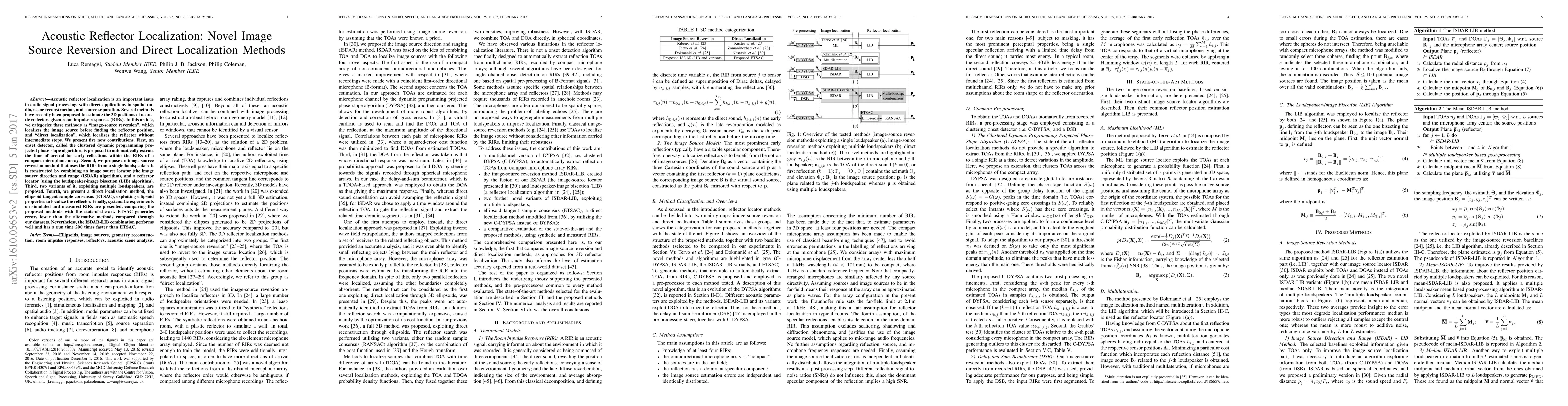 This paper introduces novel methods for acoustic reflector localization in audio signal processing, categorizing them into "image-source reversion" and "direct localization". It proposes an onset detector, an image-source reversion method using single and multiple loudspeakers, and a direct localization method called ETSAC, which outperforms alternatives in error rates while maintaining faster runtimes for some combinations.