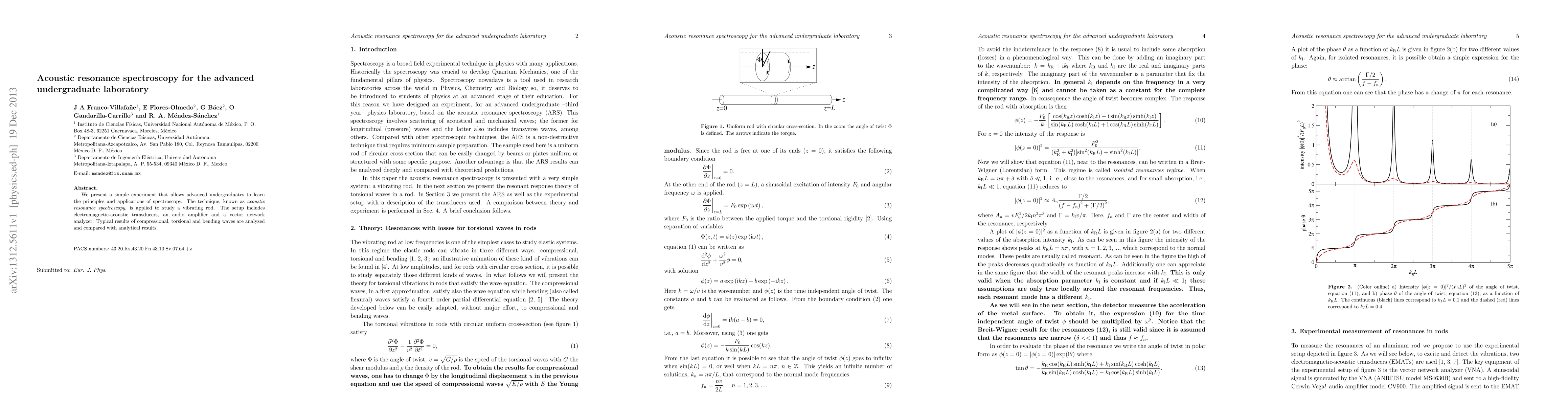 We present a simple experiment that allows advanced undergraduates to learn the principles and applications of spectroscopy. The technique, known as acoustic resonance spectroscopy, is applied to study a vibrating rod. The setup includes electromagnetic-acoustic transducers, an audio amplifier and a vector network analyzer. Typical results of compressional, torsional and bending waves are analyzed and compared with analytical results.