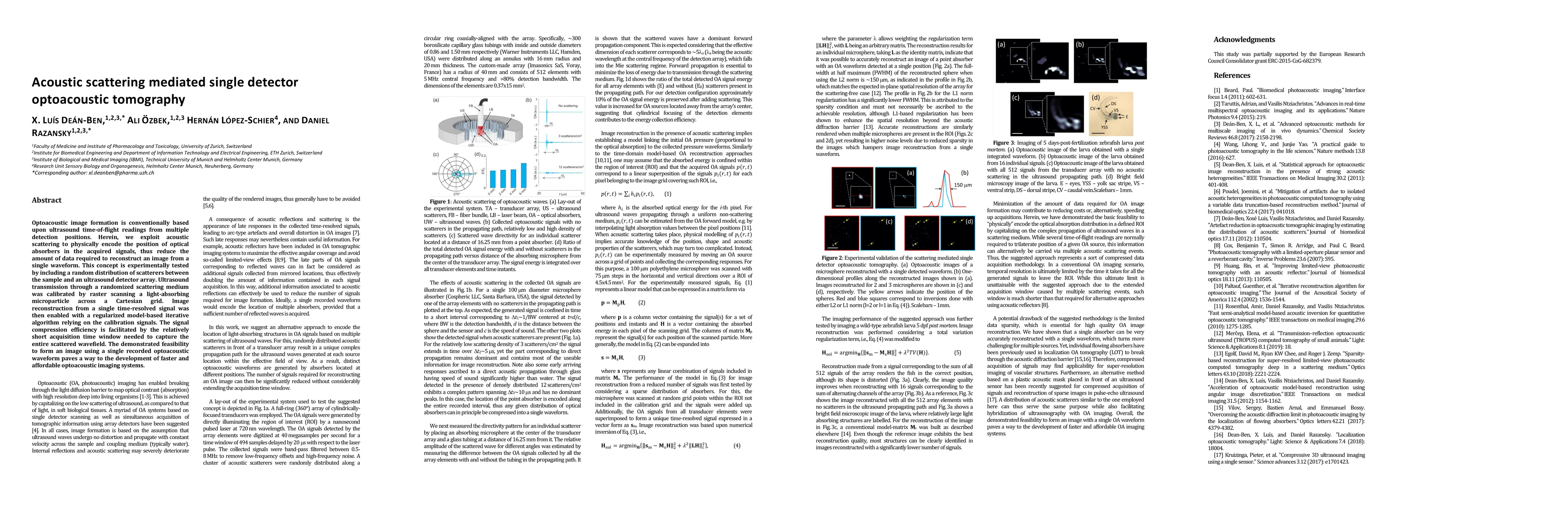 This paper proposes a novel optoacoustic tomography method that utilizes acoustic scattering to encode the position of optical absorbers, enabling image reconstruction from a single waveform. Experimental validation demonstrates the feasibility of this approach, suggesting potential for faster and more cost-effective optoacoustic imaging systems.