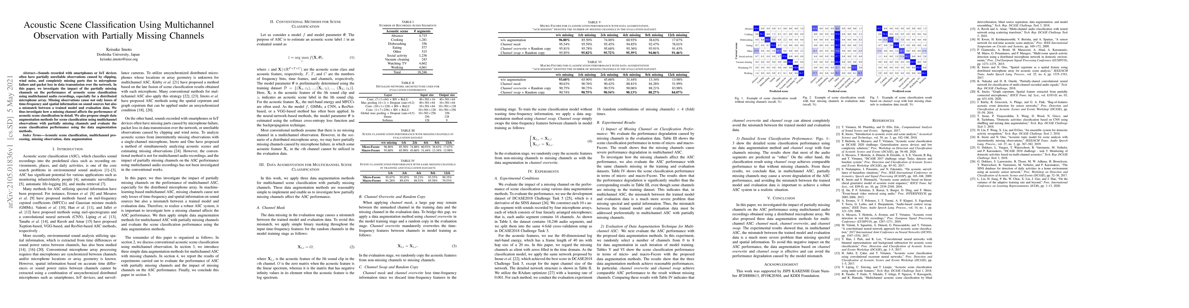 This paper examines the impact of partially missing channels in multichannel audio recordings on acoustic scene classification, especially in distributed microphone arrays. It proposes data augmentation methods to improve classification performance despite missing observations and evaluates their effectiveness.