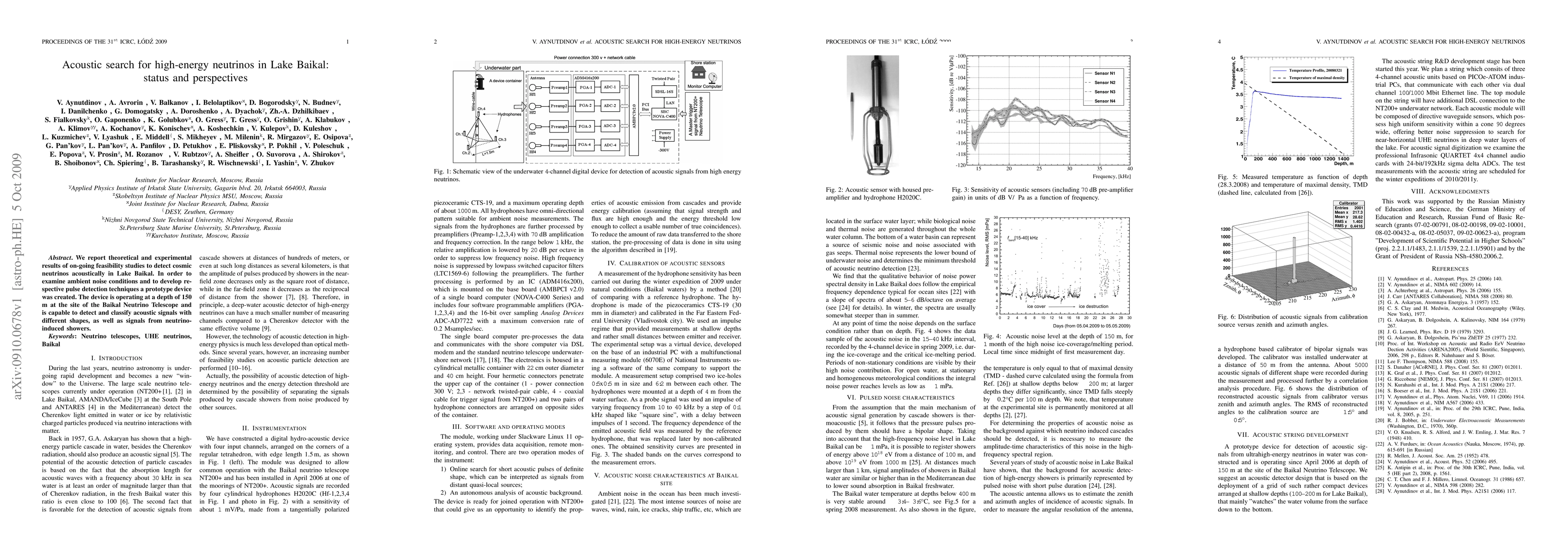 We report theoretical and experimental results of on-going feasibility studies to detect cosmic neutrinos acoustically in Lake Baikal. In order to examine ambient noise conditions and to develop respective pulse detection techniques a prototype device was created. The device is operating at a depth of 150 m at the site of the Baikal Neutrino Telescope and is capable to detect and classify acoustic signals with different shapes, as well as signals from neutrino-induced showers.