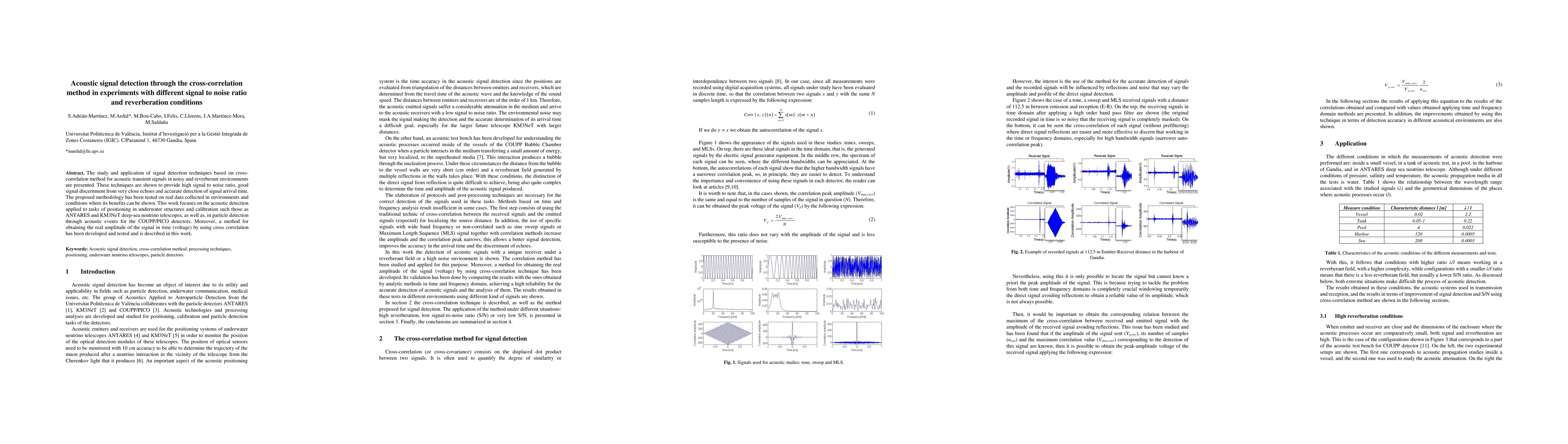 This paper investigates the use of cross-correlation techniques for detecting acoustic transient signals in noisy and reverberant environments, demonstrating high signal-to-noise ratio and precise signal arrival time detection. The methodology is tested on real data from underwater structures and neutrino telescopes, showcasing its application in positioning and particle detection.