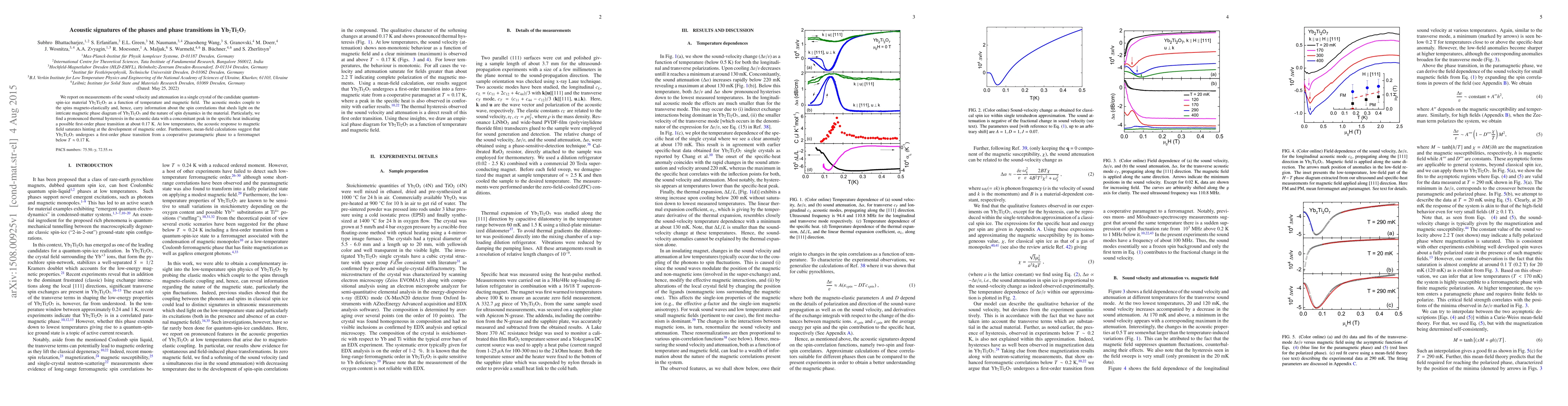 This study investigates the acoustic properties of Yb$_2$Ti$_2$O$_7$, revealing a first-order phase transition at $0.17$ K indicated by thermal hysteresis in acoustic data and a peak in specific heat. The magnetic field's effect on acoustic response at low temperatures suggests the emergence of magnetic order.