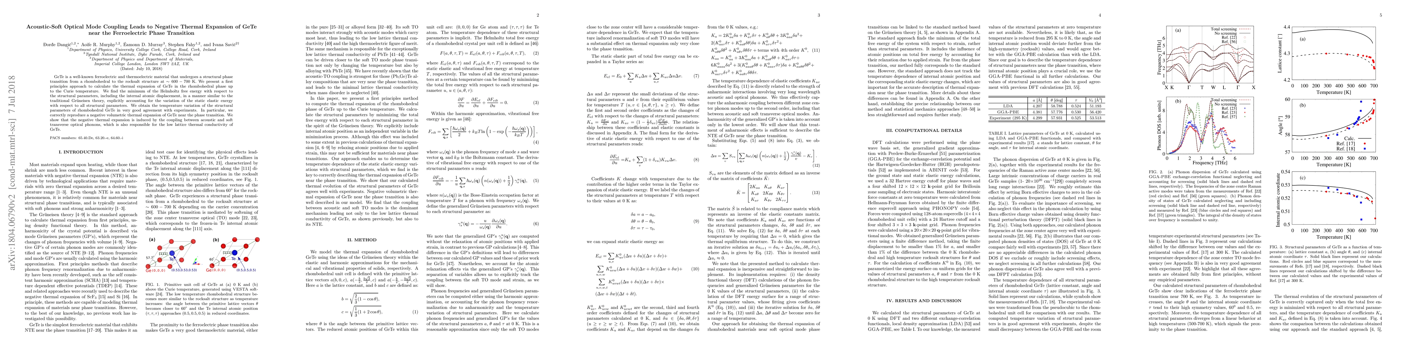 This study uses first principles calculations to investigate the thermal expansion of GeTe near its ferroelectric phase transition, revealing a negative thermal expansion due to the coupling between acoustic and soft optical phonons. The findings align well with experimental data, highlighting the material's unique thermal behavior near the transition.