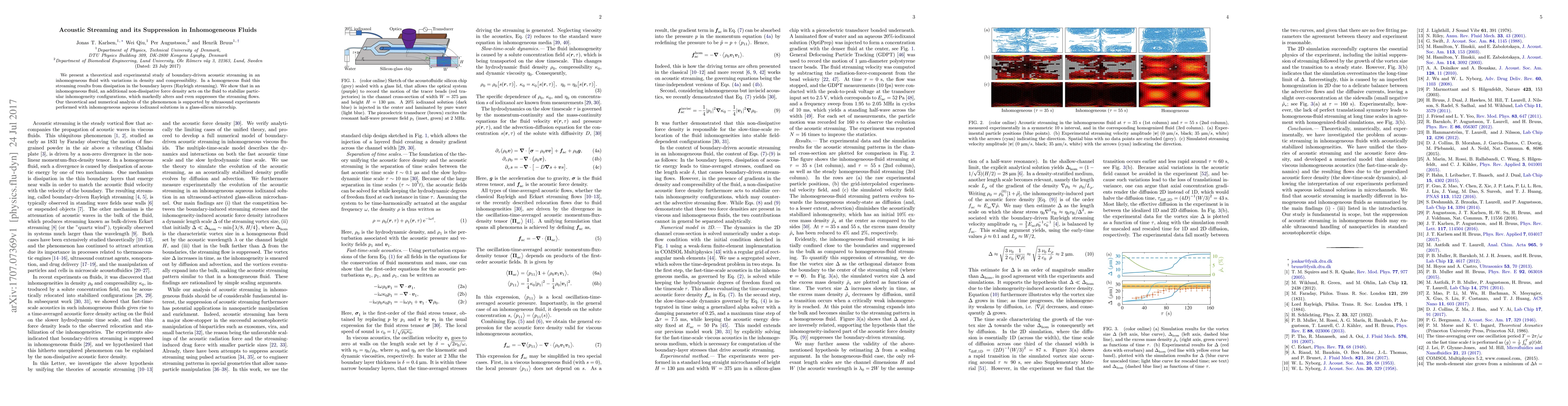 This paper investigates boundary-driven acoustic streaming in inhomogeneous fluids, revealing that non-dissipative forces can stabilize fluid configurations and suppress streaming. Experimental validation using ultrasound in iodixanol solutions confirms theoretical findings.