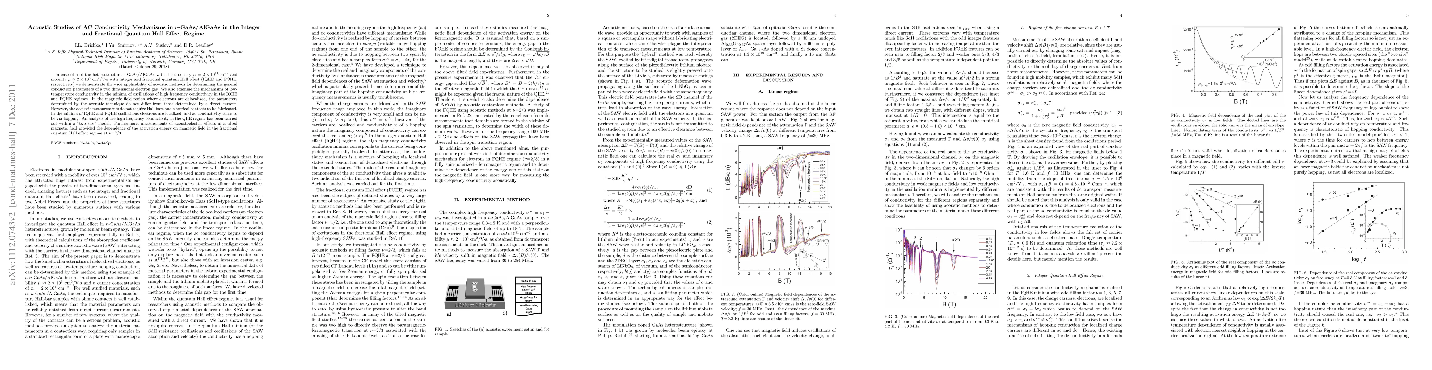 This paper investigates the use of acoustic methods to determine AC conductivity mechanisms in n-GaAs/AlGaAs heterostructures under integer and fractional quantum Hall effect conditions, showing these methods are effective without requiring electrical contacts. It also analyzes the AC conductivity via hopping in localized electron states and explores acoustoelectric effects in a tilted magnetic field.