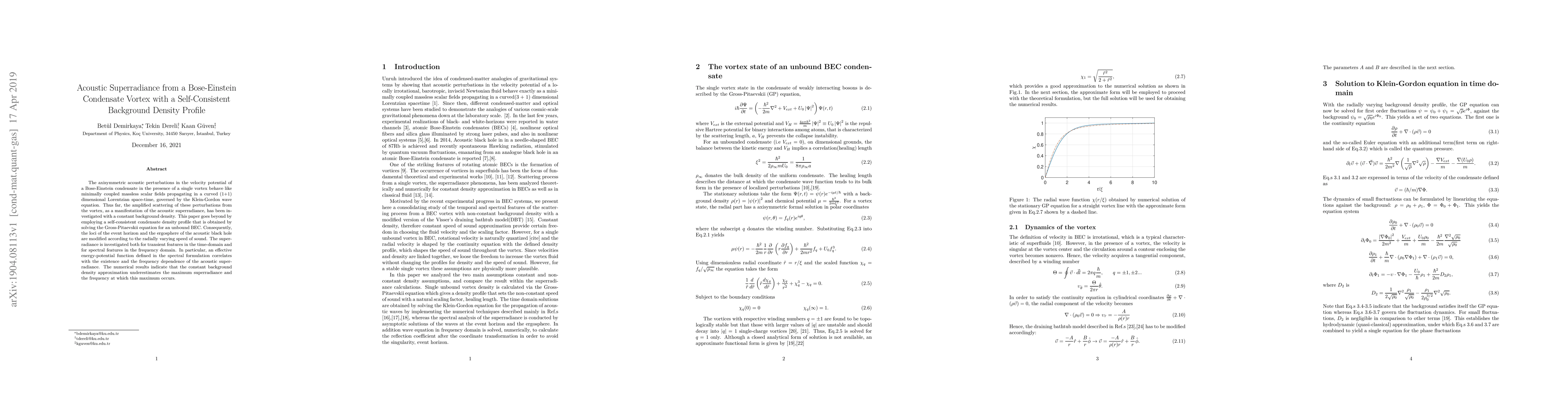 The research employs a self-consistent background density profile derived from solving the Gross-Pitaevskii equation for an unbound BEC, modifying the event horizon and ergosphere of the acoustic black hole according to the radially varying speed of sound.