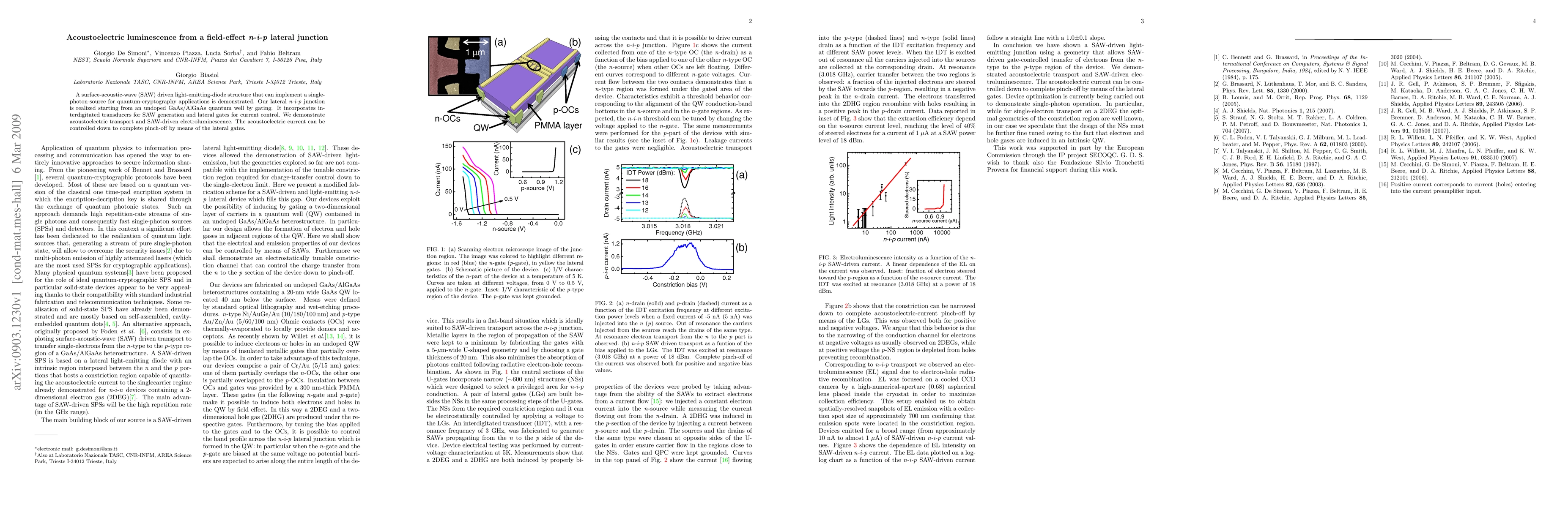 This paper demonstrates a SAW-driven light-emitting diode structure using a lateral n-i-p junction in GaAs/AlGaAs for quantum-cryptography applications, showcasing acoustoelectric transport and controllable SAW-driven electroluminescence. The acoustoelectric current is fully controllable via lateral gates, achieving complete pinch-off.