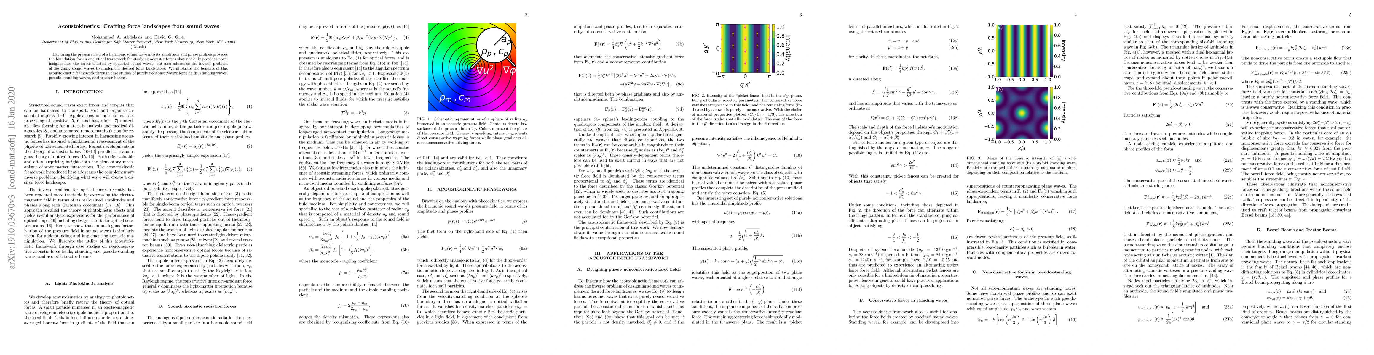 Factoring the pressure field of a harmonic sound wave into its amplitude and phase profiles provides the foundation for an analytical framework for studying acoustic forces that not only provides novel insights into the forces exerted by specified sound waves, but also addresses the inverse problem of designing sound waves to implement desired force landscapes. We illustrate the benefits of this acoustokinetic framework through case studies of purely nonconservative force fields, standing waves, pseudo-standing waves, and tractor beams.