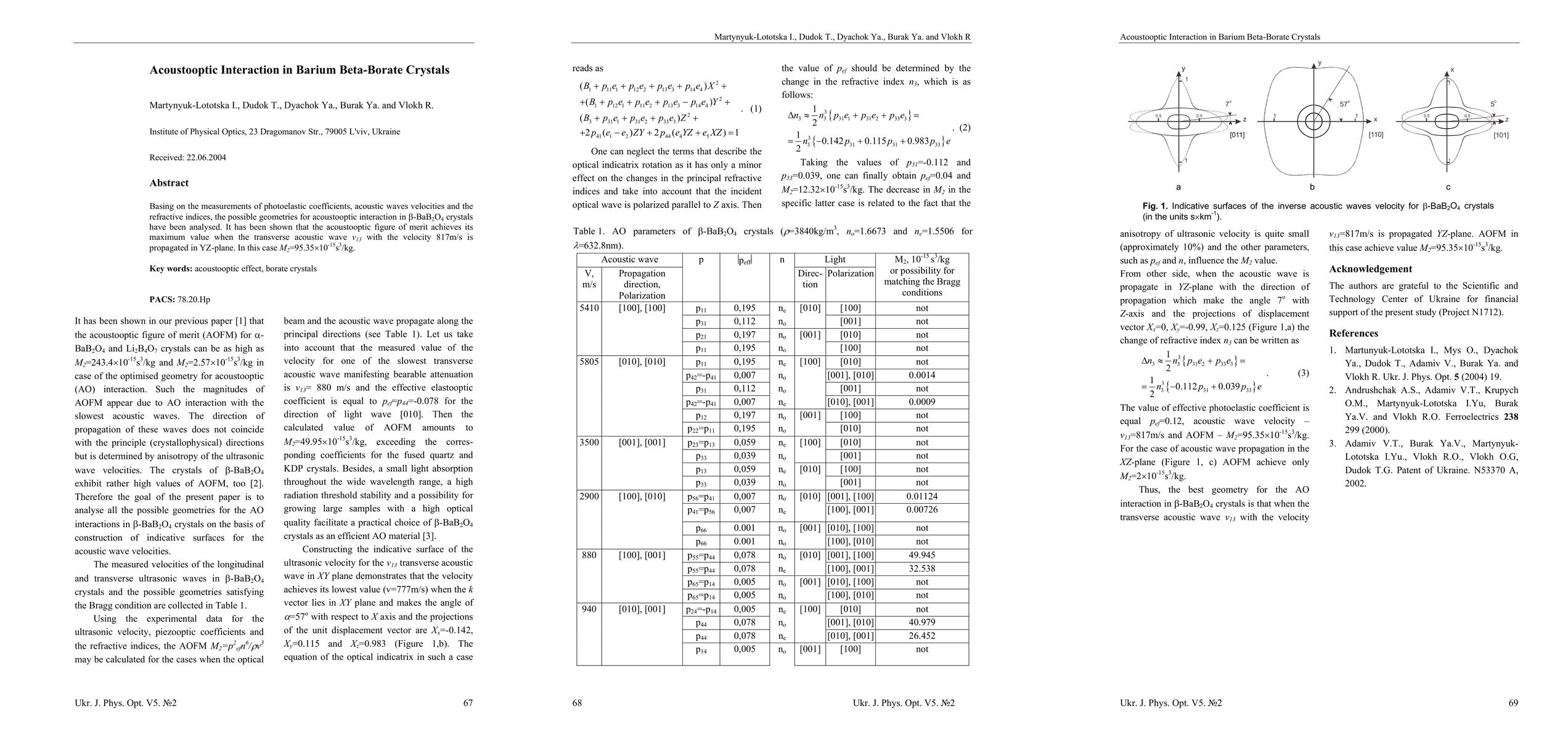 This study analyzes acoustooptic interaction in barium beta-borate (b-BaB2O4) crystals, finding that the optimal geometry occurs when a transverse acoustic wave with a velocity of 817 m/s propagates in the YZ-plane, achieving a maximum acoustooptic figure of merit of M2=95.35*10^-15 s^3/kg.