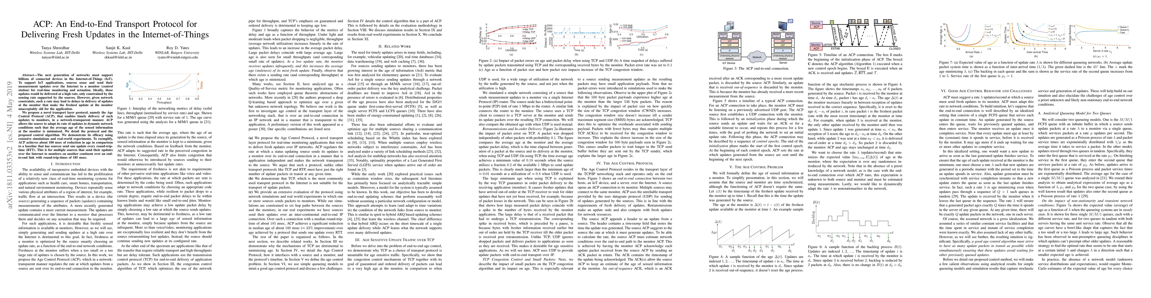 The paper proposes the Age Control Protocol (ACP), a novel transport layer protocol designed to deliver fresh updates efficiently in IoT networks, adapting to dynamic network conditions to minimize the average age of sensed information at the monitor. The protocol's effectiveness is demonstrated through extensive simulations and real-world experiments.