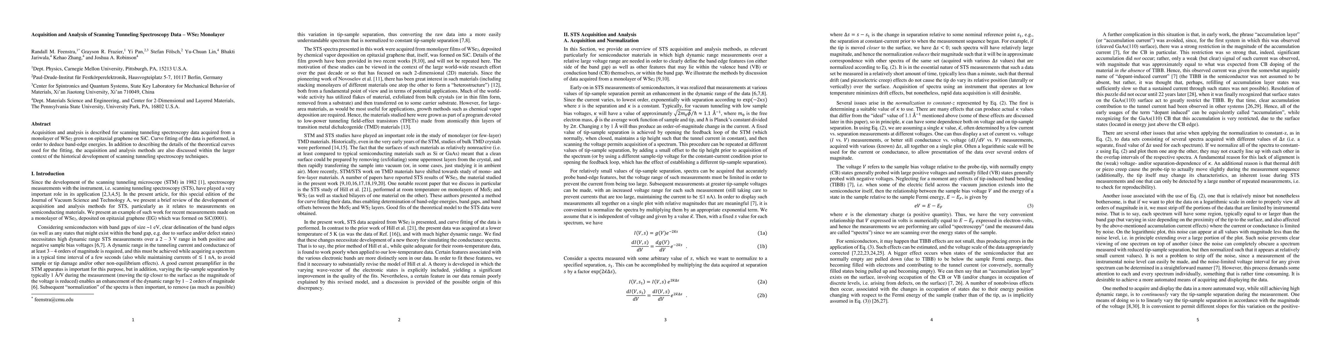 This paper details the acquisition and analysis of scanning tunneling spectroscopy data from a WSe$_2$ monolayer on epitaxial graphene, employing curve fitting to deduce band-edge energies, and contextualizes the methods within the historical evolution of scanning tunneling spectroscopy techniques.