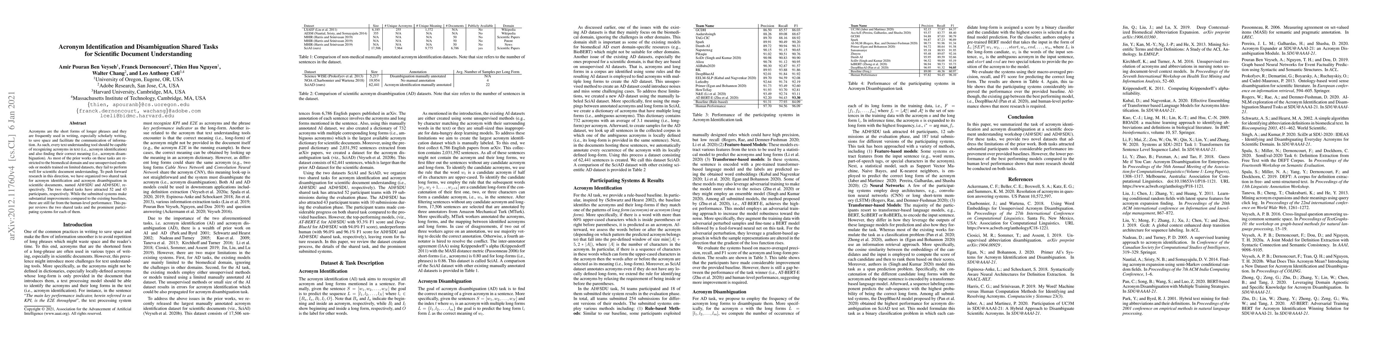 This paper discusses two shared tasks, AI@SDU and AD@SDU, aimed at improving acronym identification and disambiguation in scientific documents. Despite improvements over existing methods, the participating systems still fall short of human-level performance.