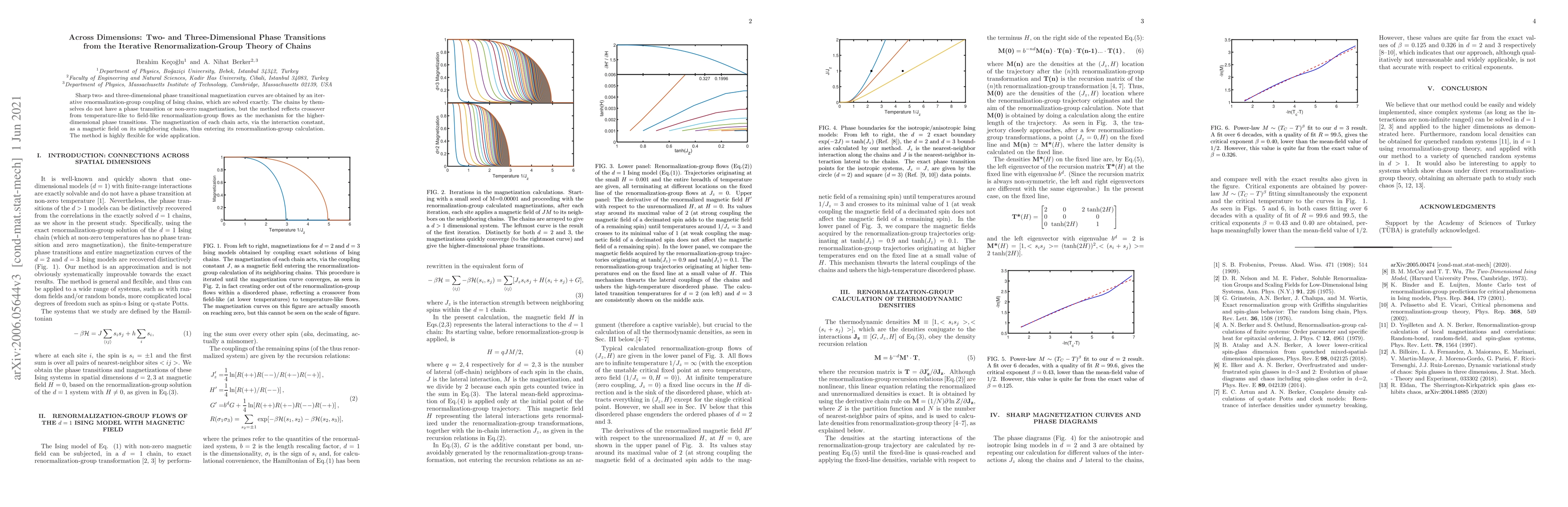 Sharp two- and three-dimensional phase transitional magnetization curves are obtained by an iterative renormalization-group coupling of Ising chains, which are solved exactly. The chains by themselves do not have a phase transition or non-zero magnetization, but the method reflects crossover from temperature-like to field-like renormalization-group flows as the mechanism for the higher-dimensional phase transitions. The magnetization of each chain acts, via the interaction constant, as a magnetic field on its neighboring chains, thus entering its renormalization-group calculation. The method is highly flexible for wide application.