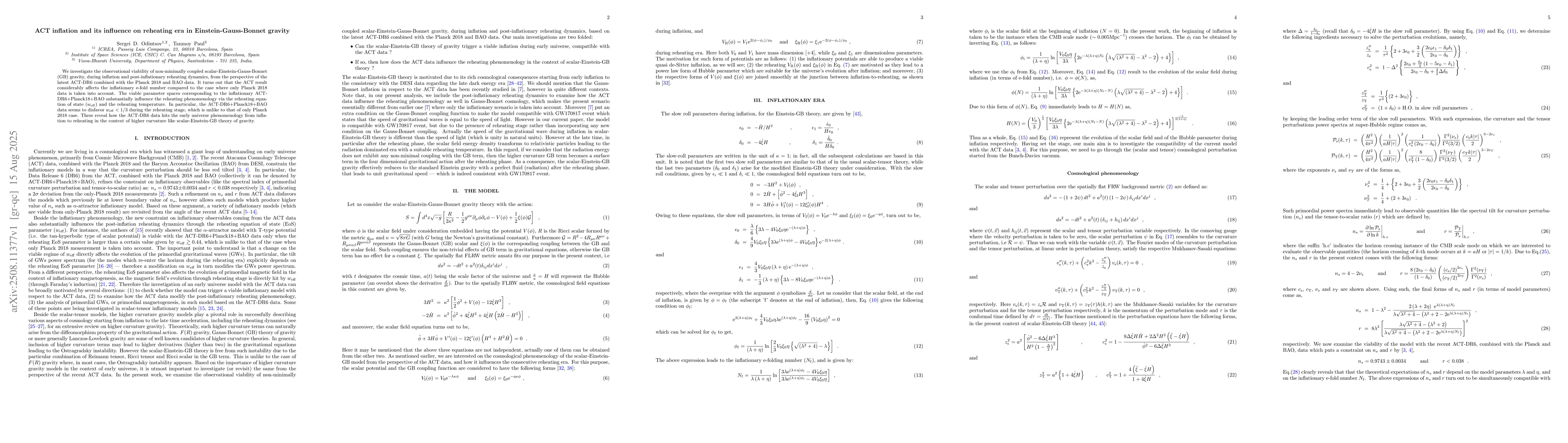 We investigate the observational viability of non-minimally coupled scalar-Einstein-Gauss-Bonnet (GB) gravity, during inflation and post-inflationary reheating dynamics, from the perspective of the latest ACT-DR6 combined with the Planck 2018 and BAO data. It turns out that the ACT result considerably affects the inflationary e-fold number compared to the case where only Planck 2018 data is taken into account. The viable parameter spaces corresponding to the inflationary ACT-DR6+Planck18+BAO substantially influence the reheating phenomenology via the reheating equation of state ($w_\mathrm{eff}$) and the reheating temperature. In particular, the ACT-DR6+Planck18+BAO data seems to disfavor $w_\mathrm{eff} < 1/3$ during the reheating stage, which is unlike to that of only Planck 2018 case. These reveal how the ACT-DR6 data hits the early universe phenomenology from inflation to reheating in the context of higher curvature like scalar-Einstein-GB theory of gravity.