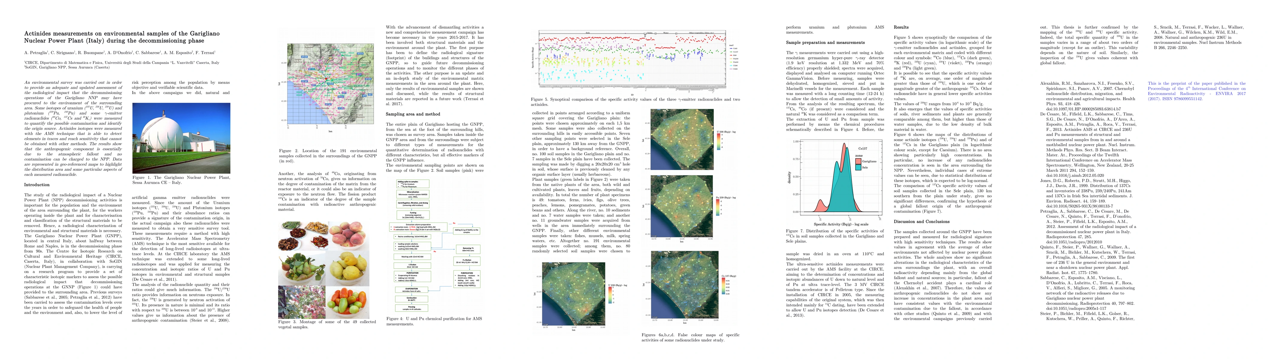 This study assesses the radiological impact of the Garigliano Nuclear Power Plant decommissioning on the surrounding area, using AMS to measure actinides and gamma-emitting radionuclides. Results indicate no contamination from the NPP, with the anthropogenic component primarily due to atmospheric fallout.