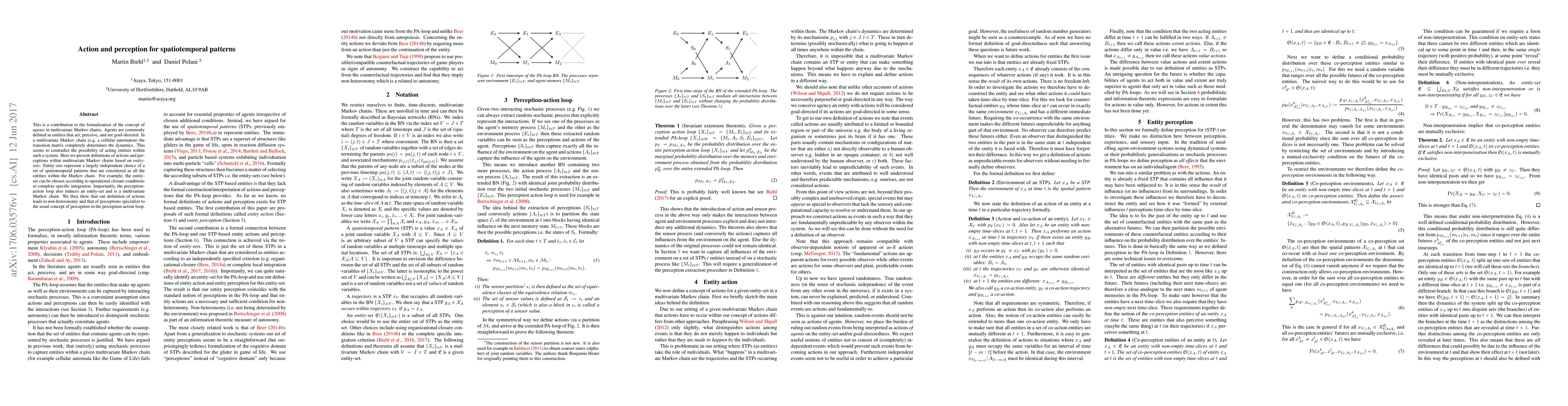 This paper formalizes the concept of acting entities within multivariate Markov chains by defining actions and perceptions based on entity-sets representing spatiotemporal patterns. It demonstrates that the perception-action loop itself is a multivariate Markov chain, leading to non-heteronomy and specialized perceptions.