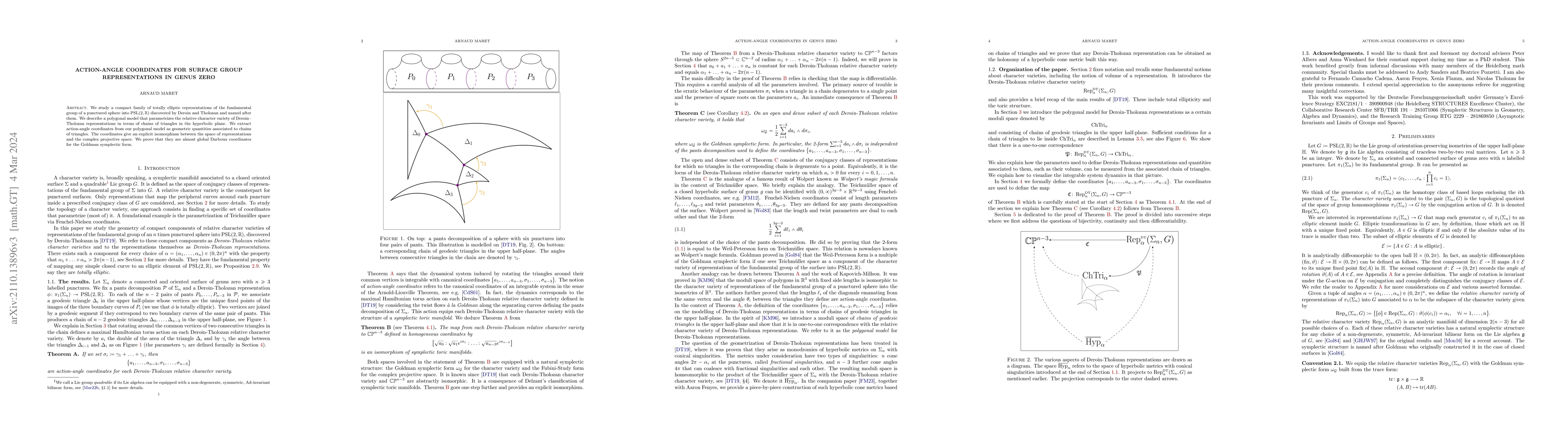 This paper explores a family of elliptic representations of a punctured sphere's fundamental group into PSL(2,ℝ) and introduces a polygonal model to parametrize the relative character variety. It derives action-angle coordinates from this model, establishing an isomorphism between the representation space and complex projective space, and proves these coordinates are almost global Darboux coordinates for the Goldman symplectic form.