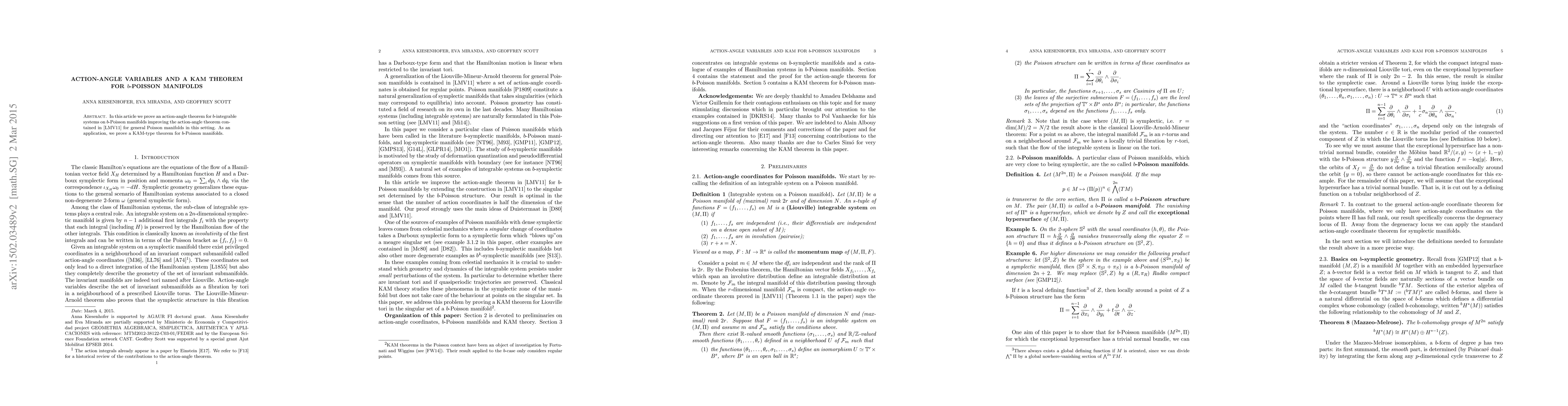 This paper proves an improved action-angle theorem for b-integrable systems on b-Poisson manifolds, extending previous results for general Poisson manifolds, and applies this to establish a KAM-type theorem for b-Poisson manifolds.