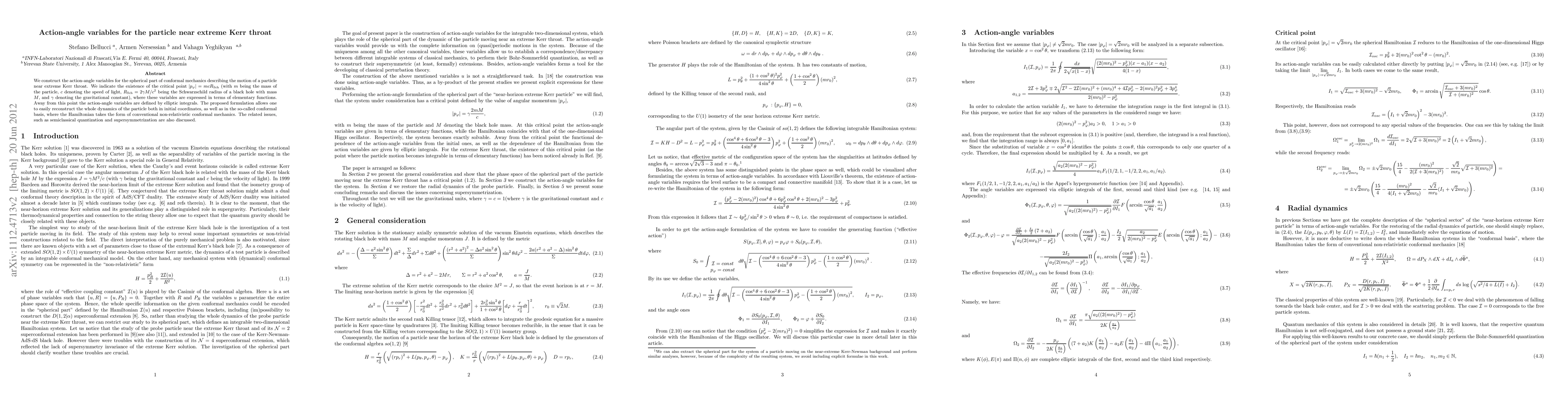 This paper constructs action-angle variables for a particle near an extreme Kerr black hole, revealing a critical point where these variables are expressed in elementary functions. Away from this point, they are defined by elliptic integrals, facilitating the reconstruction of particle dynamics in both initial and conformal coordinates.
