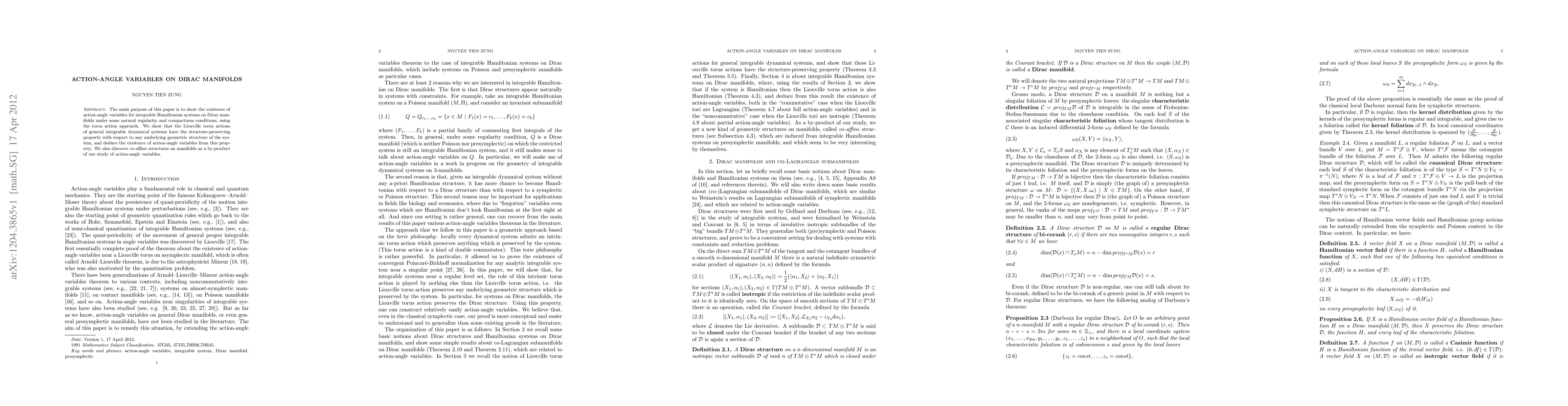 The study introduces a new concept, Dirac manifolds, and develops a novel method for studying their properties, including the existence of action-angle variables.