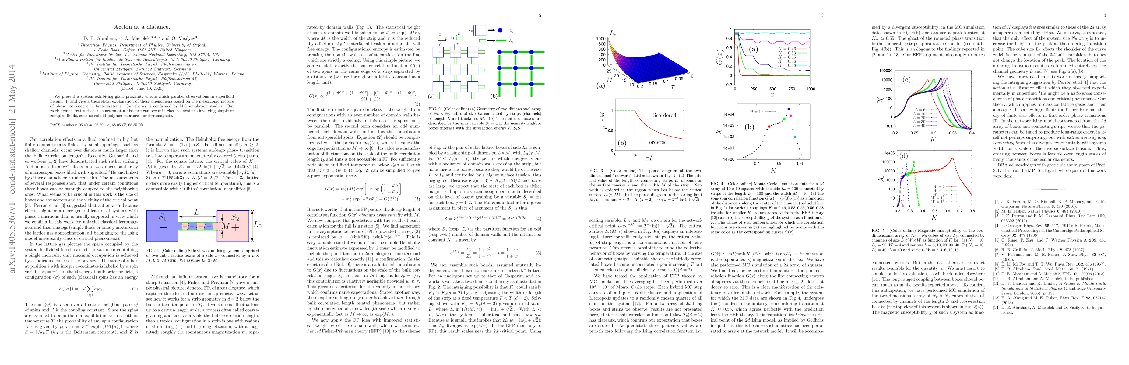 We present a system exhibiting giant proximity effects which parallel observations in superfluid helium (Perron et al, Nature Physics V. 6, 499 (2010)) and give a theoretical explanation of these phenomena based on the mesoscopic picture of phase coexistence in finite systems. Our theory is confirmed by MC simulation studies. Our work demonstrates that such action-at-a-distance can occur in classical systems involving simple or complex fluids, such as colloid-polymer mixtures, or ferromagnets.