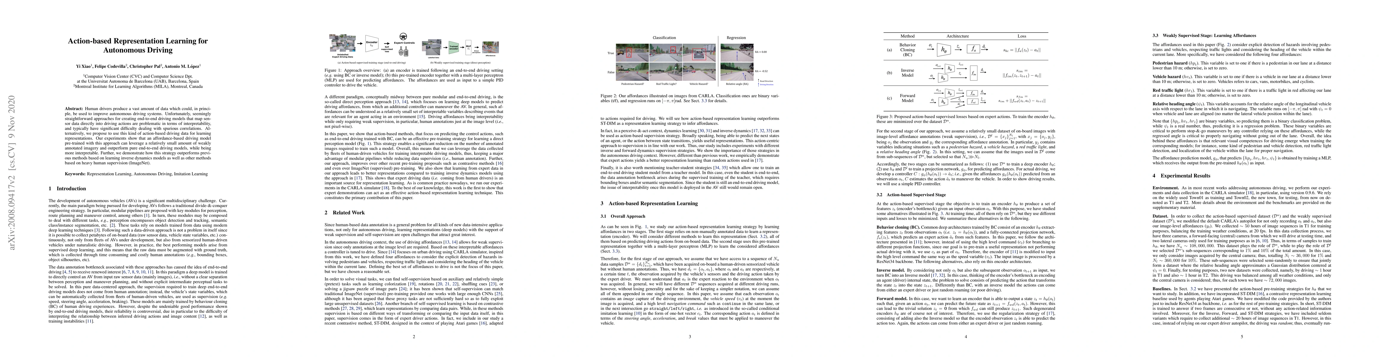 Researchers propose using action-based driving data for learning representations to improve autonomous driving systems, outperforming traditional end-to-end models while being more interpretable.