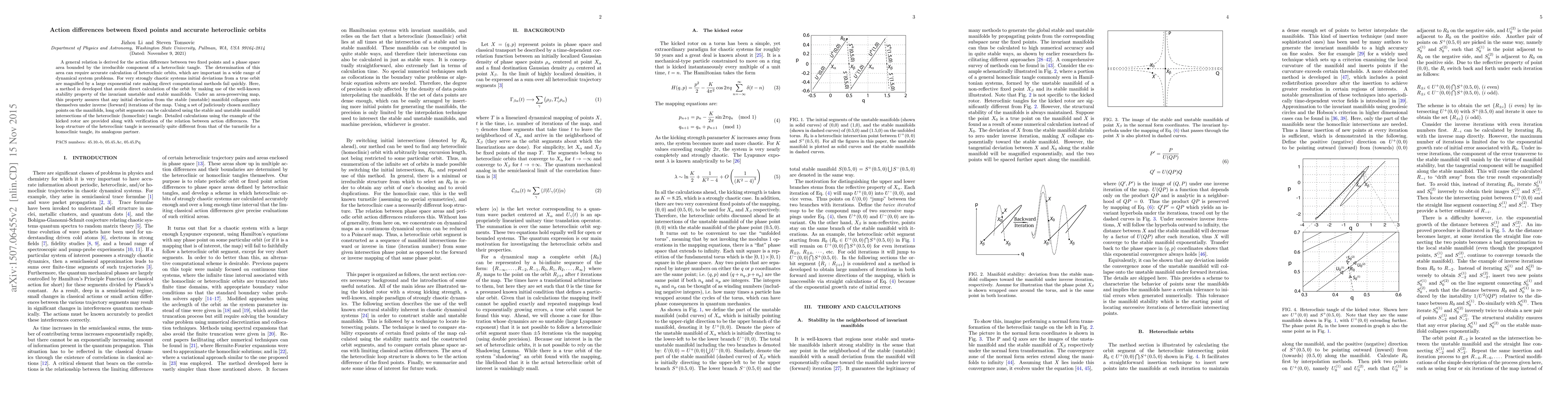 A general relation is derived for the action difference between two fixed points and a phase space area bounded by the irreducible component of a heteroclinic tangle. The determination of this area can require accurate calculation of heteroclinic orbits, which are important in a wide range of dynamical system problems. For very strongly chaotic systems initial deviations from a true orbit are magnified by a large exponential rate making direct computational methods fail quickly. Here, a method is developed that avoids direct calculation of the orbit by making use of the well-known stability property of the invariant unstable and stable manifolds. Under an area-preserving map, this property assures that any initial deviation from the stable (unstable) manifold collapses onto themselves under inverse (forward) iterations of the map. Using a set of judiciously chosen auxiliary points on the manifolds, long orbit segments can be calculated using the stable and unstable manifold intersections of the heteroclinic (homoclinic) tangle. Detailed calculations using the example of the kicked rotor are provided along with verification of the relation between action differences. The loop structure of the heteroclinic tangle is necessarily quite different from that of the turnstile for a homoclinic tangle, its analogous partner.