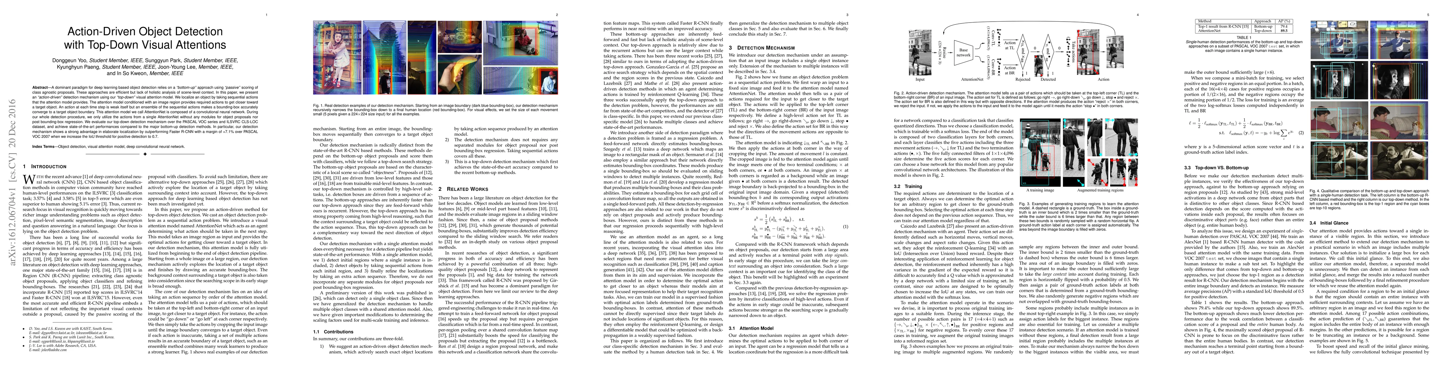 This paper introduces an "action-driven" top-down object detection method using a visual attention model called AttentionNet, which sequentially localizes objects by taking weak actions. The approach outperforms bottom-up methods, achieving state-of-the-art performance on PASCAL VOC and ILSVRC CLS-LOC datasets, especially in precise localization.