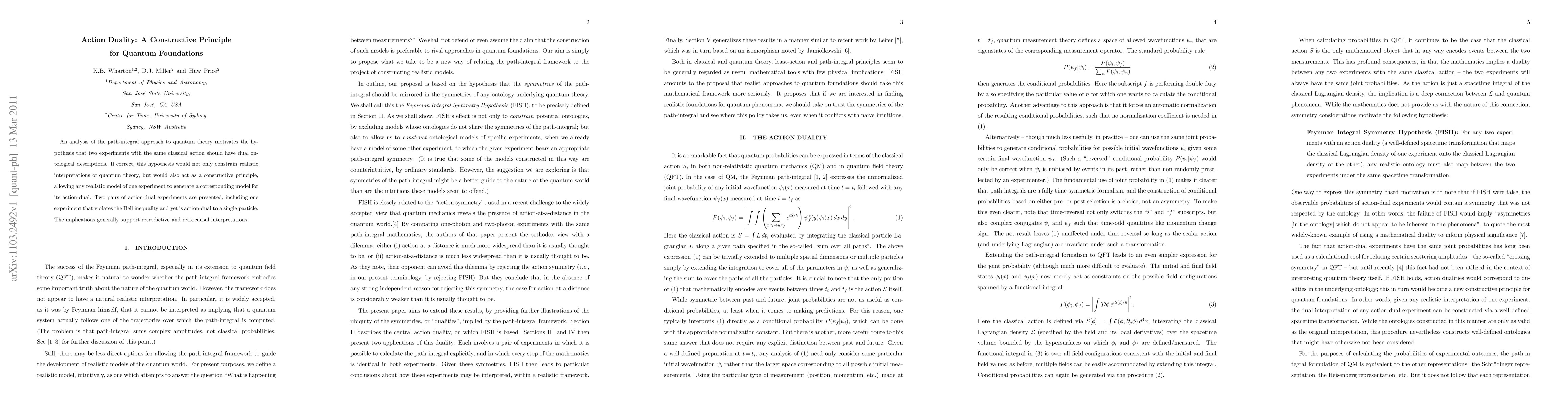 An analysis of the path-integral approach to quantum theory motivates the hypothesis that two experiments with the same classical action should have dual ontological descriptions. If correct, this hypothesis would not only constrain realistic interpretations of quantum theory, but would also act as a constructive principle, allowing any realistic model of one experiment to generate a corresponding model for its action-dual. Two pairs of action-dual experiments are presented, including one experiment that violates the Bell inequality and yet is action-dual to a single particle. The implications generally support retrodictive and retrocausal interpretations.