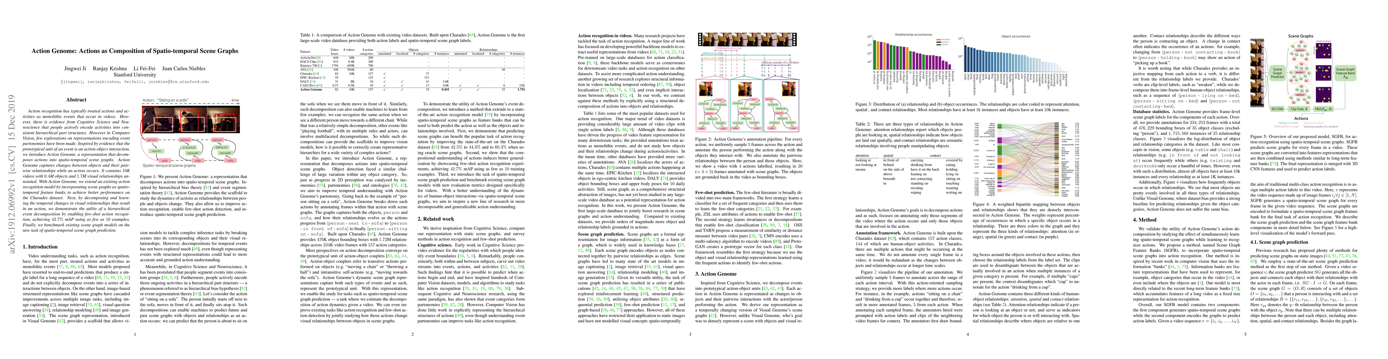 A new representation called Action Genome decomposes actions into spatio-temporal scene graphs, achieving better performance on action recognition tasks. It enables few-shot action recognition with just 10 examples.