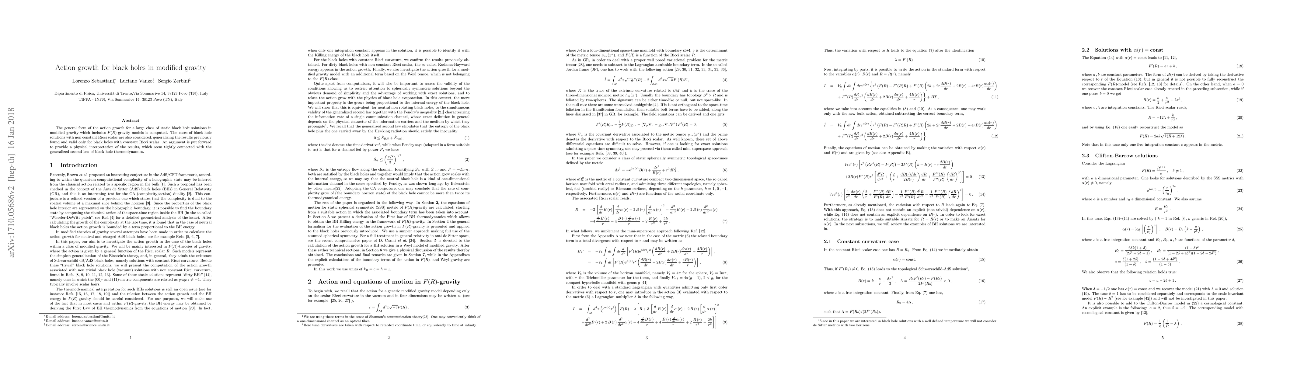 Researchers compute a general form of action growth for black holes in modified gravity models, extending previous results to non-constant curvature scenarios.