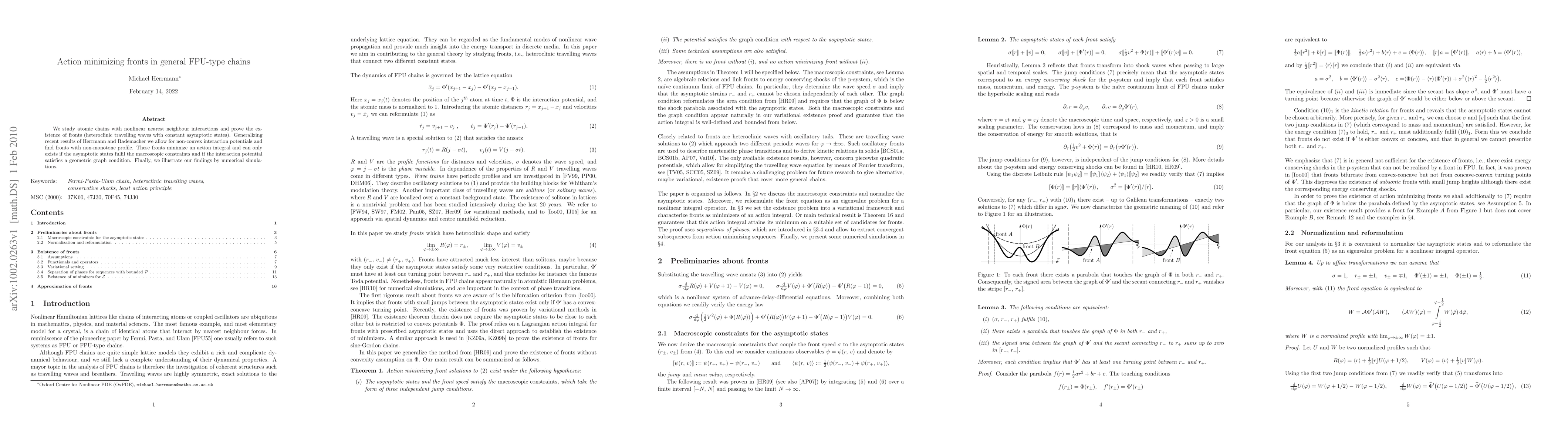 This paper proves the existence of action-minimizing fronts in FPU-type atomic chains with non-convex, non-monotone interaction potentials, under specific macroscopic constraints and geometric conditions, and supports the findings with numerical simulations.