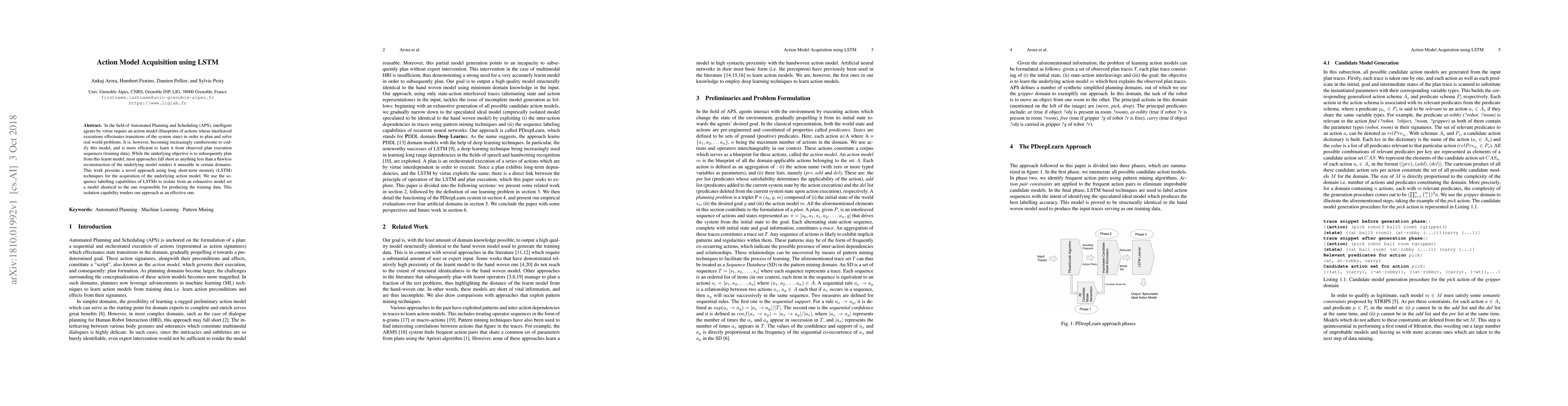 In the field of Automated Planning and Scheduling (APS), intelligent agents by virtue require an action model (blueprints of actions whose interleaved executions effectuates transitions of the system state) in order to plan and solve real world problems. It is, however, becoming increasingly cumbersome to codify this model, and is more efficient to learn it from observed plan execution sequences (training data). While the underlying objective is to subsequently plan from this learnt model, most approaches fall short as anything less than a flawless reconstruction of the underlying model renders it unusable in certain domains. This work presents a novel approach using long short-term memory (LSTM) techniques for the acquisition of the underlying action model. We use the sequence labelling capabilities of LSTMs to isolate from an exhaustive model set a model identical to the one responsible for producing the training data. This isolation capability renders our approach as an effective one.