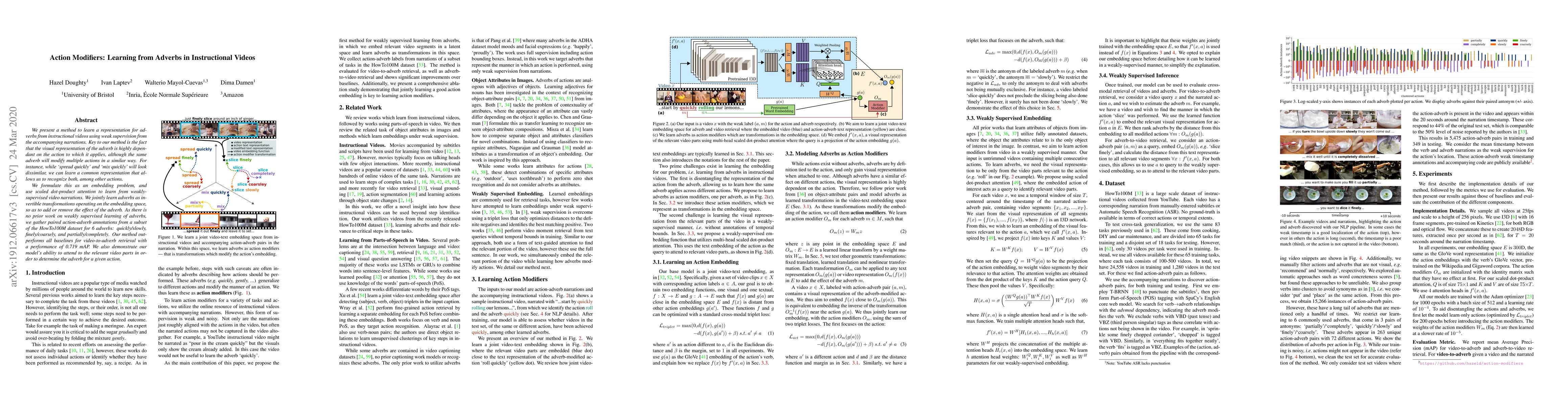 This paper introduces a method to learn representations of adverbs from instructional videos using weak supervision from narrations. The method leverages scaled dot-product attention to identify common visual representations of adverbs modifying different actions, achieving a mAP of 0.719 for video-to-adverb retrieval.