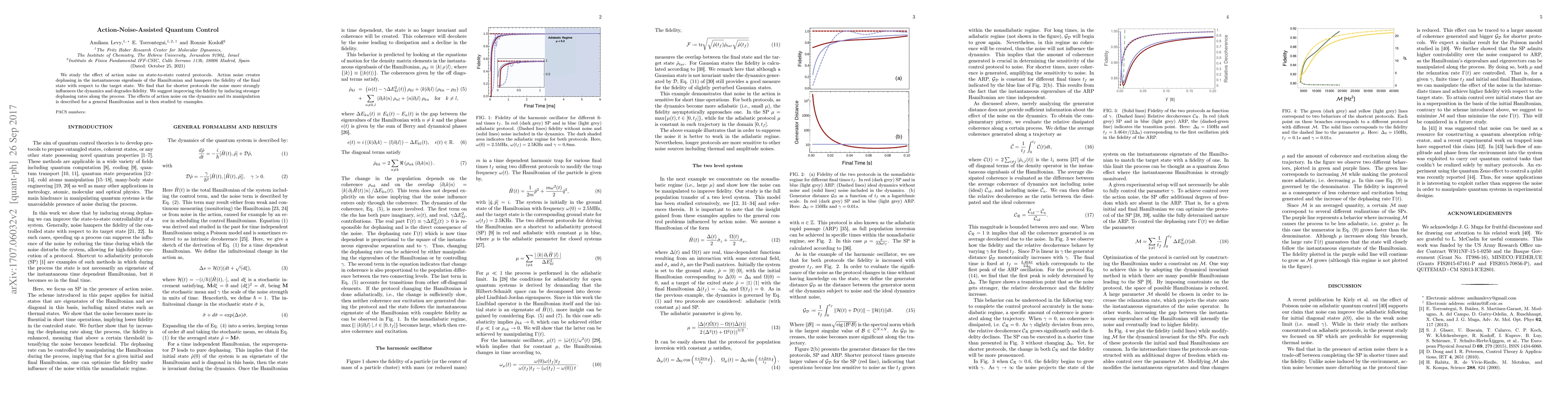 We study the effect of action noise on state-to-state control protocols. Action noise creates dephasing in the instantaneous eigenbasis of the Hamiltonian and hampers the fidelity of the final state with respect to the target state. We find that for shorter protocols the noise more strongly influences the dynamics and degrades fidelity. We suggest improving the fidelity by inducing stronger dephasing rates along the process. The effects of action noise on the dynamics and its manipulation is described for a general Hamiltonian and is then studied by examples.