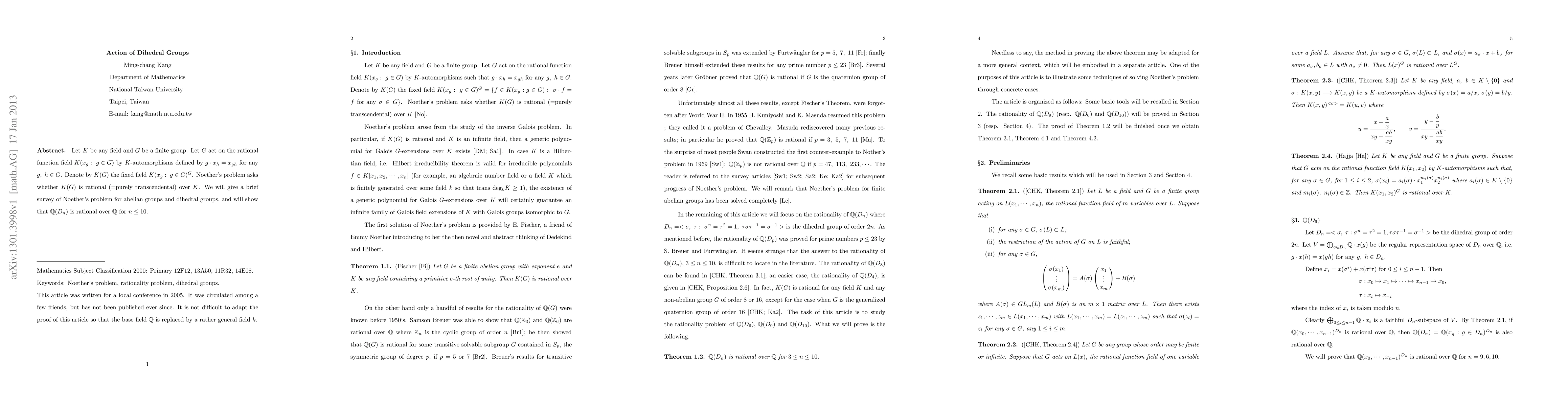 This paper investigates whether the fixed field of a dihedral group acting on rational functions is rational over the base field, solving it for dihedral groups with n <= 10.