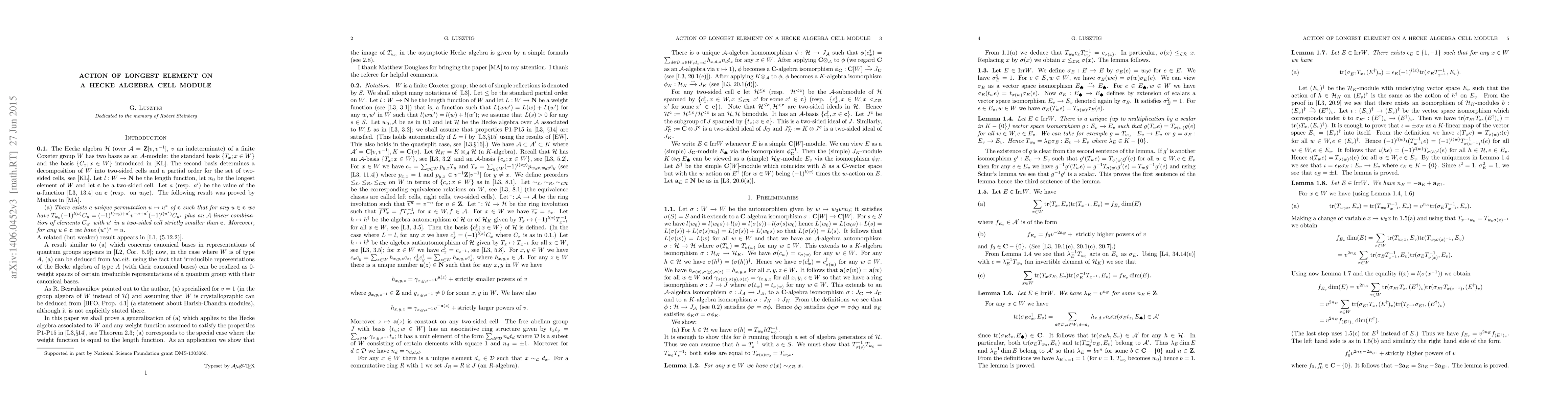 By a result of Mathas, the basis element T_{w_0} of the Hecke algebra of a finite Coxeter group acts in the canonical basis of a cell module as a permutation matrix times plus or minus a power of v. We generalize this result to the unequal parameter case,. We also show that the image of T_{w_0} in the corresponding asymptotic Hecke algebra is given by a simple formula.