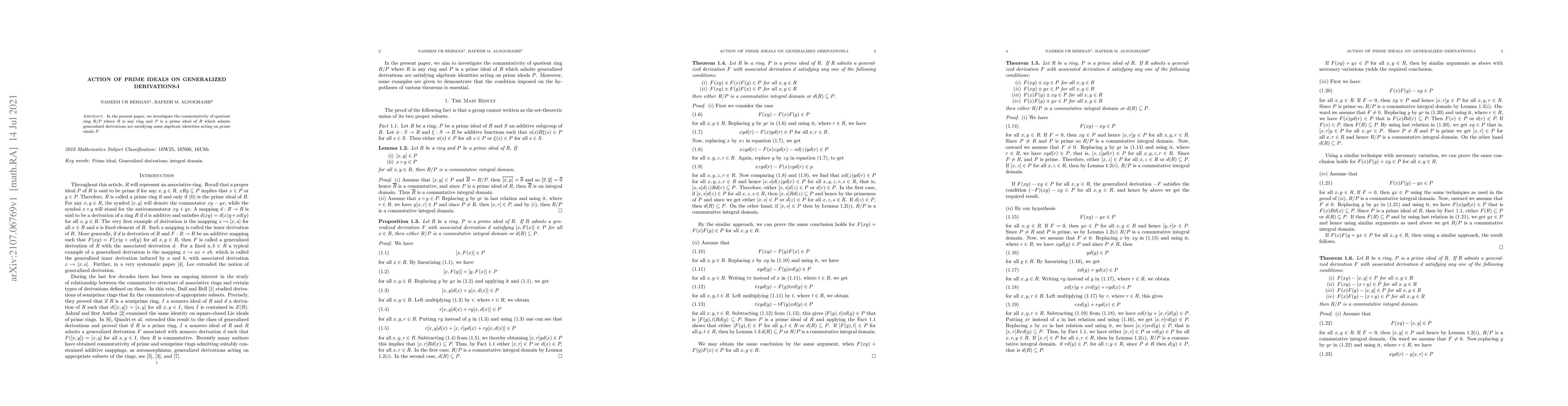 In the present paper, we investigate the commutativity of quotient ring $R/P$ where $R$ is any ring and $P$ is a prime ideal of $R$ which admits generalized derivations are satisfying some algebraic identities acting on prime ideals $P$.