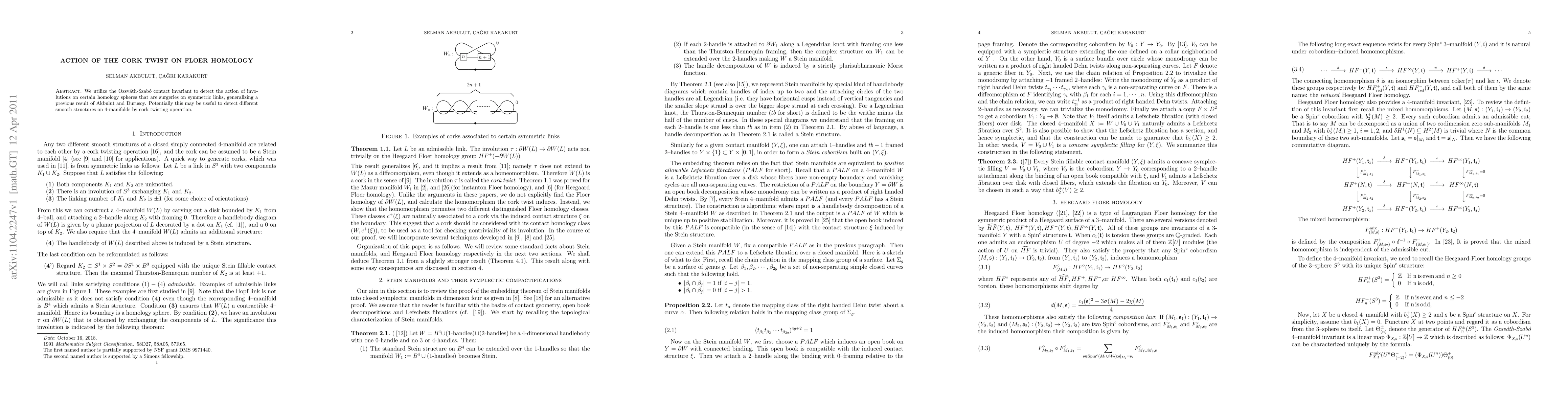 Summary: This paper uses the Ozsvath-Szabo contact invariant to study the effect of cork twists on Floer homology in homology spheres derived from symmetric links, extending prior work and suggesting potential applications in detecting smooth structures on 4-manifolds.