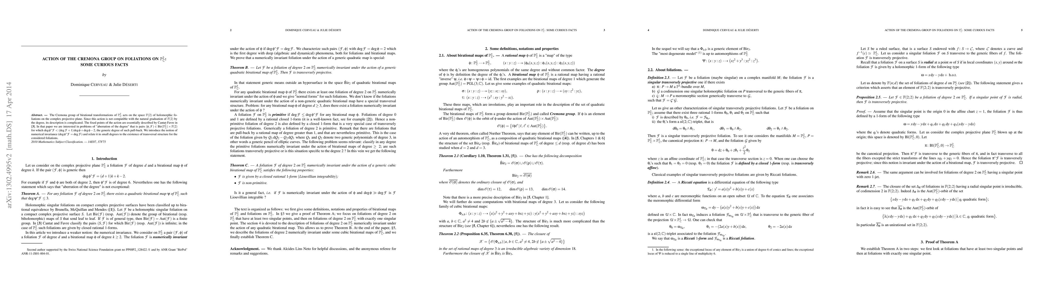 The Cremona group acts on the space of holomorphic foliations on $\mathbb{P}^2_\mathbb{C}$, complicating the action due to non-compatibility with foliation degree. Fixed points of this action are characterized by Cantat-Favre, focusing on aberration of degree and introducing numerical invariance for small degrees.