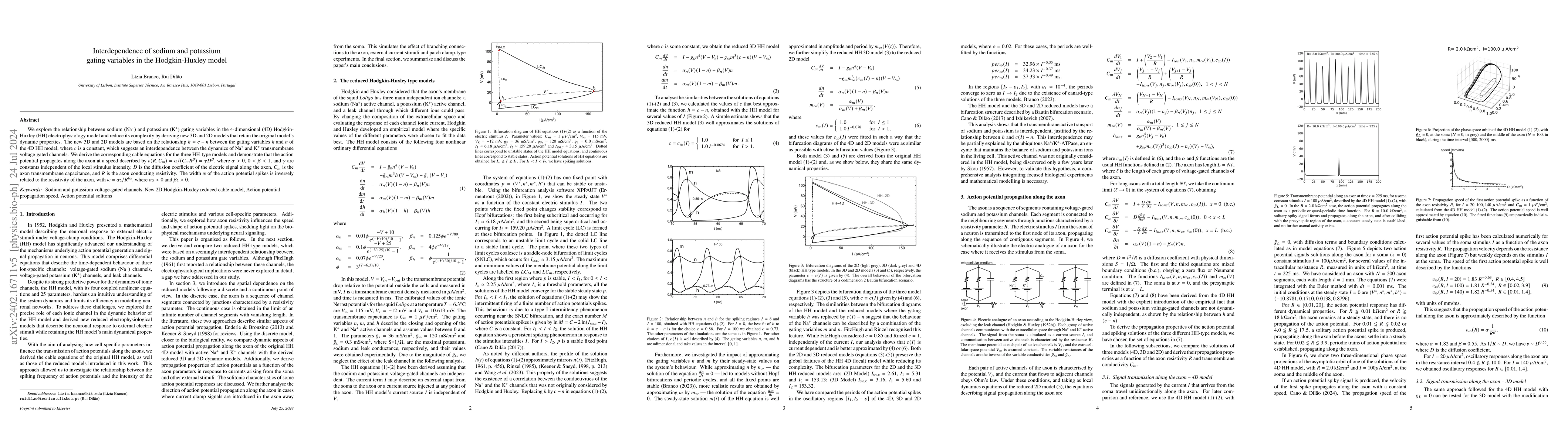 We explore the relationship between sodium (Na$^+$) and potassium (K$^+$) gating variables in the 4-dimensional (4D) Hodgkin-Huxley (HH) electrophysiology model and reduce its complexity by deriving new 3D and 2D models that retain the original model's dynamic properties. The new 3D and 2D models are based on the relationship $h \simeq c - n$ between the gating variables $h$ and $n$ of the 4D HH model, where $c$ is a constant, which suggests an interdependence between the dynamics of Na$^+$ and K$^+$ transmembrane voltage-gated channels. We derive the corresponding cable equations for the three HH-type models and demonstrate that the action potential propagates along the axon at a speed described by $v(R, C_m) = \alpha / (C_m R^{\beta}) = \gamma D^{\beta}$, where $\alpha > 0$, $0 < \beta < 1$, and $\gamma$ are constants independent of the local stimulus intensity, $D$ is the diffusion coefficient of the electric signal along the axon, $C_m$ is the axon transmembrane capacitance, and $R$ is the axon conducting resistivity. The width $w$ of the action potential spikes is inversely related to the resistivity of the axon, with $w = \alpha_2 / R^{\beta_2}$, where $\alpha_2 > 0$ and $\beta_2 > 0$.