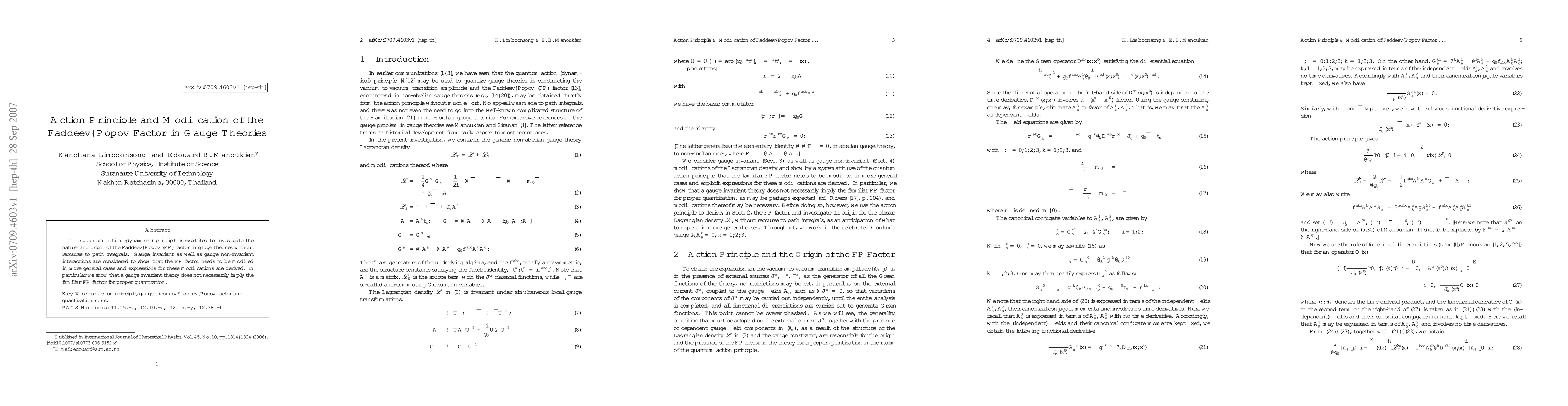 The quantum action (dynamical) principle is exploited to investigate the nature and origin of the Faddeev-Popov (FP) factor in gauge theories without recourse to path integrals. Gauge invariant as well as gauge non-invariant interactions are considered to show that the FP factor needs to be modified in more general cases and expressions for these modifications are derived. In particular we show that a gauge invariant theory does not necessarily imply the familiar FP factor for proper quantization.
