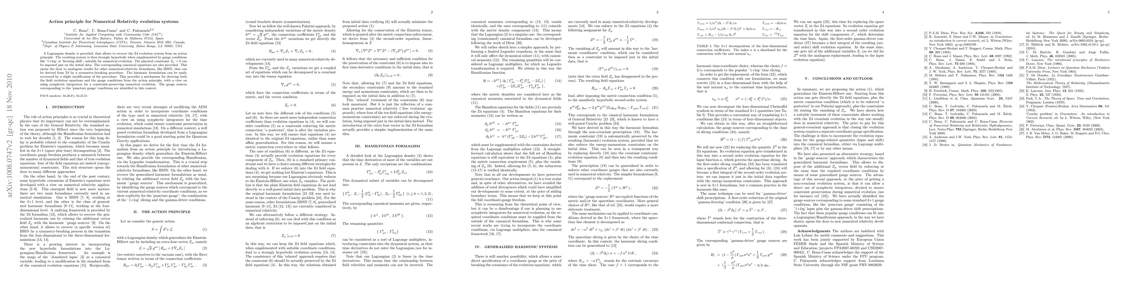 Researchers developed a new method to derive numerical relativity evolution systems from an action principle, providing a framework for constraint-preserving simulations with symplectic integrators.