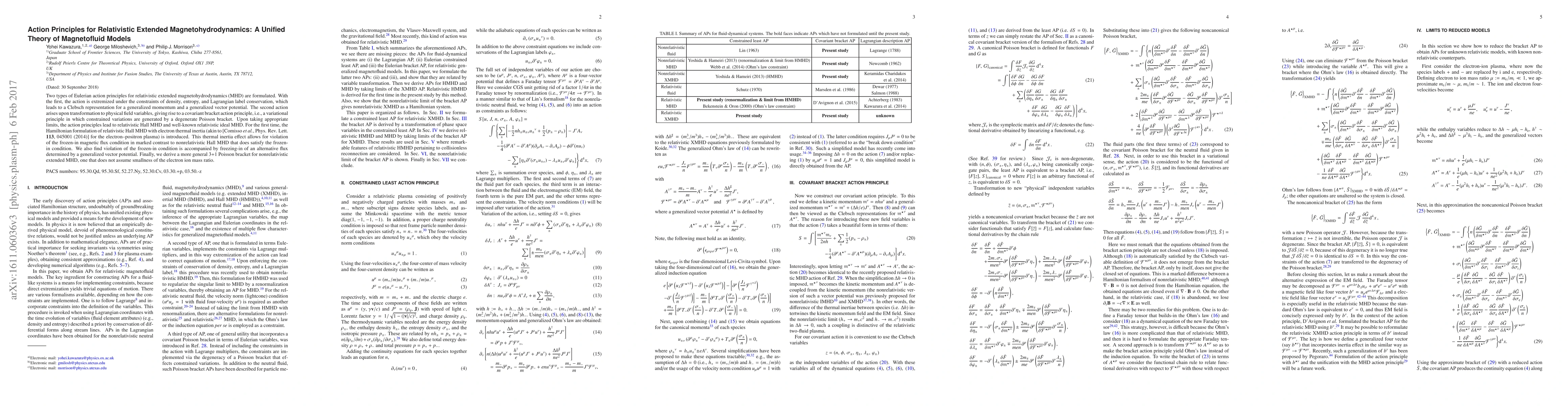 This paper formulates two Eulerian action principles for relativistic extended magnetohydrodynamics, leading to a unified theory of magnetofluid models. It introduces the first Hamiltonian formulation of relativistic Hall MHD with electron thermal inertia, allowing for the violation of the frozen-in magnetic flux condition, and derives a generalized 3+1 Poisson bracket for nonrelativistic extended MHD.