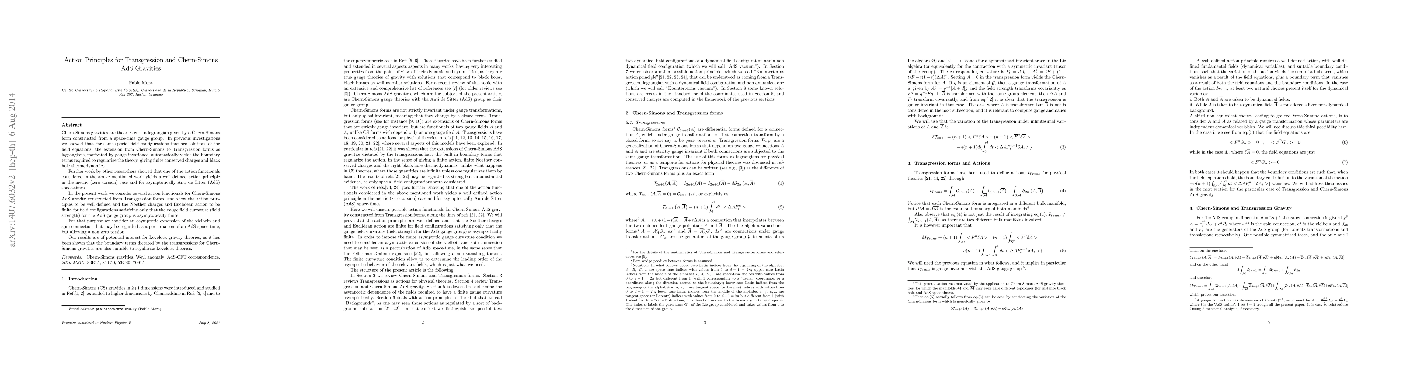 This paper investigates action principles for Chern-Simons gravities and shows that Transgression forms yield finite conserved charges and black hole thermodynamics in the context of asymptotically Anti de Sitter (AdS) space-times. It demonstrates that the proposed action functionals lead to well-defined Noether charges and finite Euclidean actions for asymptotically finite gauge field curvatures.