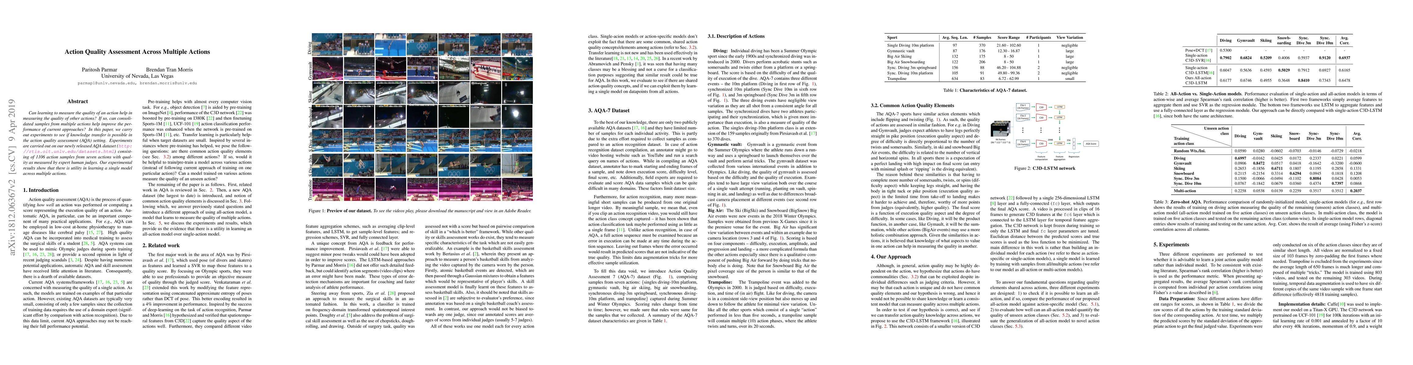 Can learning to measure the quality of an action help in measuring the quality of other actions? If so, can consolidated samples from multiple actions help improve the performance of current approaches? In this paper, we carry out experiments to see if knowledge transfer is possible in the action quality assessment (AQA) setting. Experiments are carried out on our newly released AQA dataset (http://rtis.oit.unlv.edu/datasets.html) consisting of 1106 action samples from seven actions with quality scores as measured by expert human judges. Our experimental results show that there is utility in learning a single model across multiple actions.