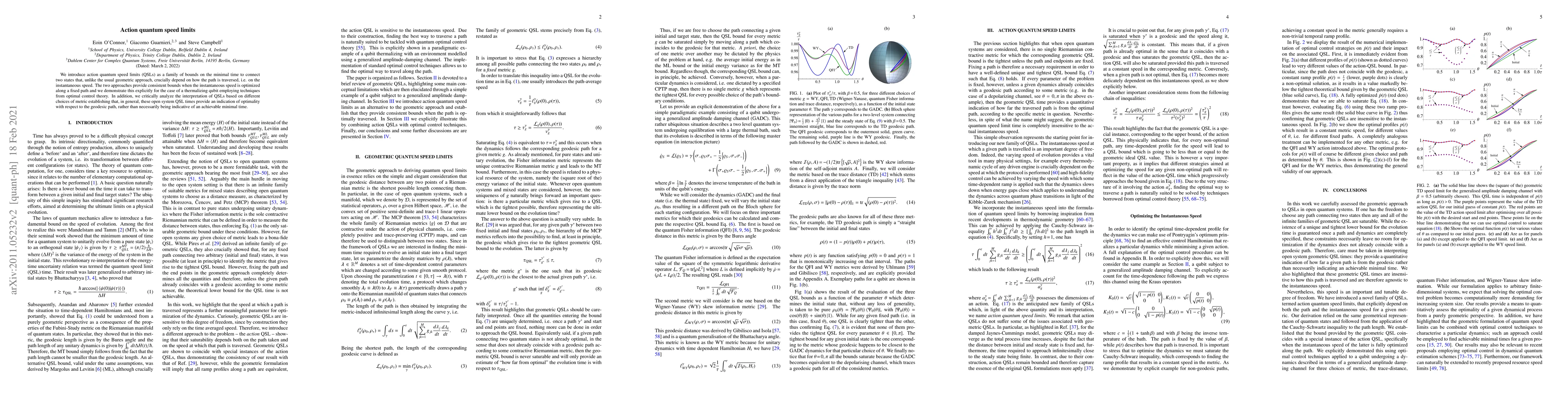 Researchers introduce action quantum speed limits (QSLs) as bounds on minimal time to connect states in a system, considering the path's instantaneous speed, and show they provide an indication of optimality rather than achievable minimal time.