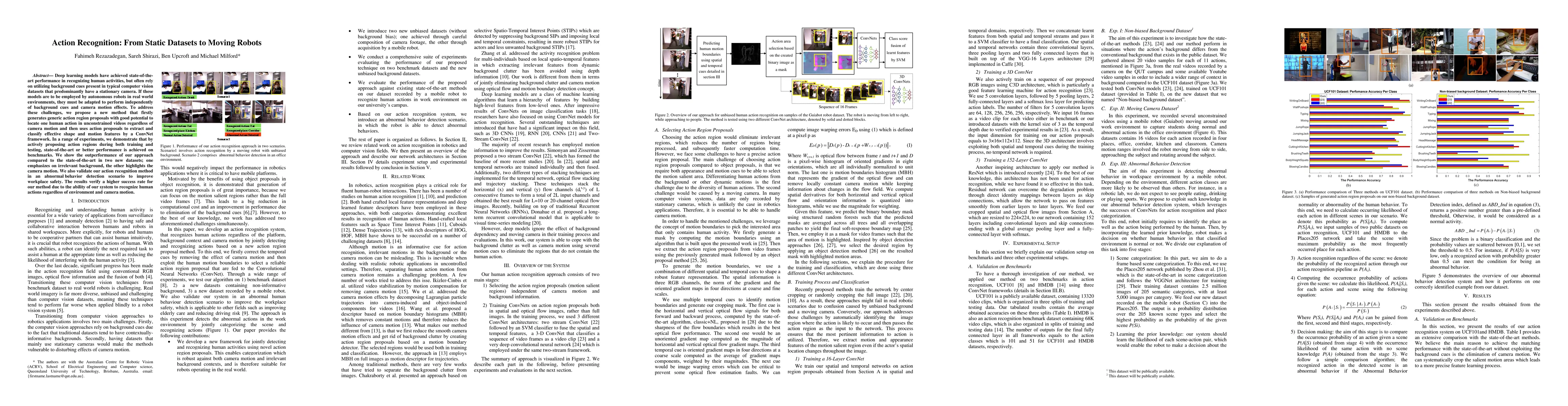 A new method for action recognition in autonomous robots uses generic action region proposals to extract and classify effective shape and motion features without relying on background cues or camera motion effects.